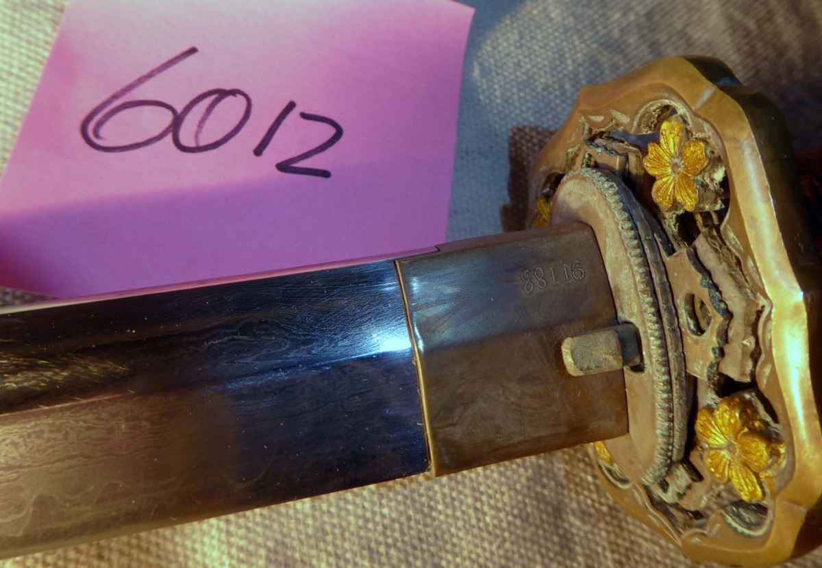 TWENTIETH CENTURY SECOND QUARTER AUTHENTIC SAMURAI SWORD 26 7/8" DAMASCUS STEEL BLADE, NUMBERED 91188