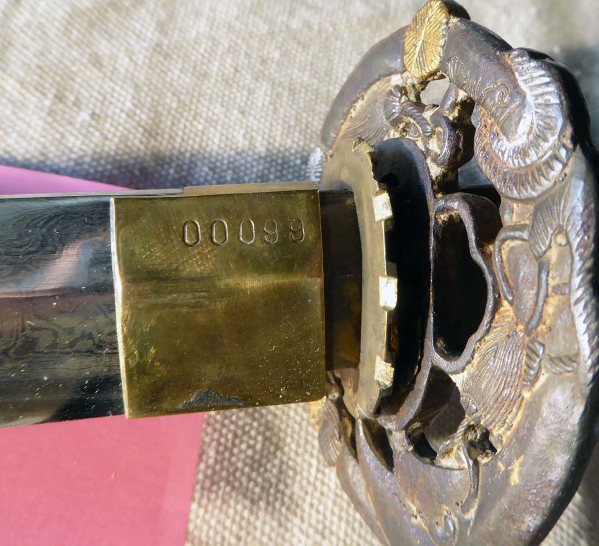 TWENTIETH CENTURY SECOND QUARTER AUTHENTIC SAMURAI SWORD 28 1/2" DAMASCUS STEEL BLADE, NUMBERED 00099