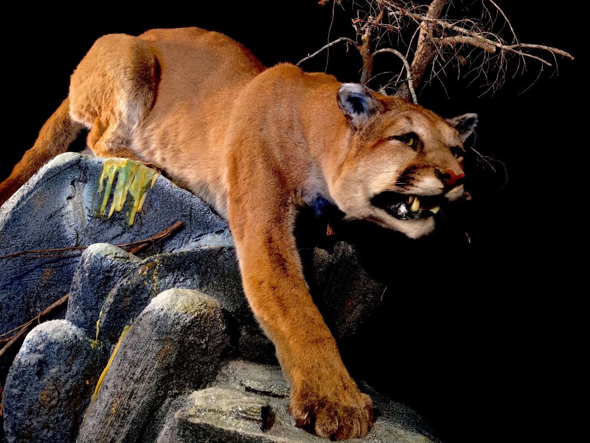 Lot 95 SPECTACULAR MOUNTAIN LION (PUMA CONCOLOR) FULL BODY MOUNT, 55'' LONG, 50'' HIGH FROM BASE