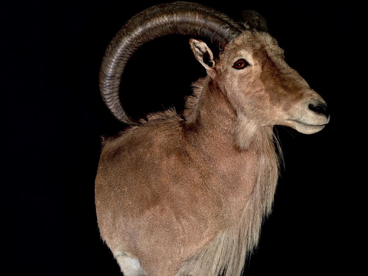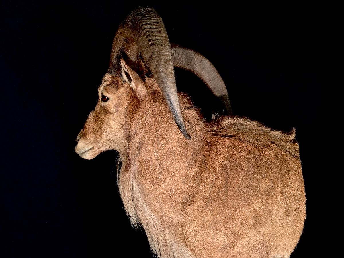 Lot 97 AMERICAN BARBARY SHEEP (AMMOTRAGUS LERVIA) HEAD AND FRONT QUARTERS MOUNT ON ROCK, 48'' H