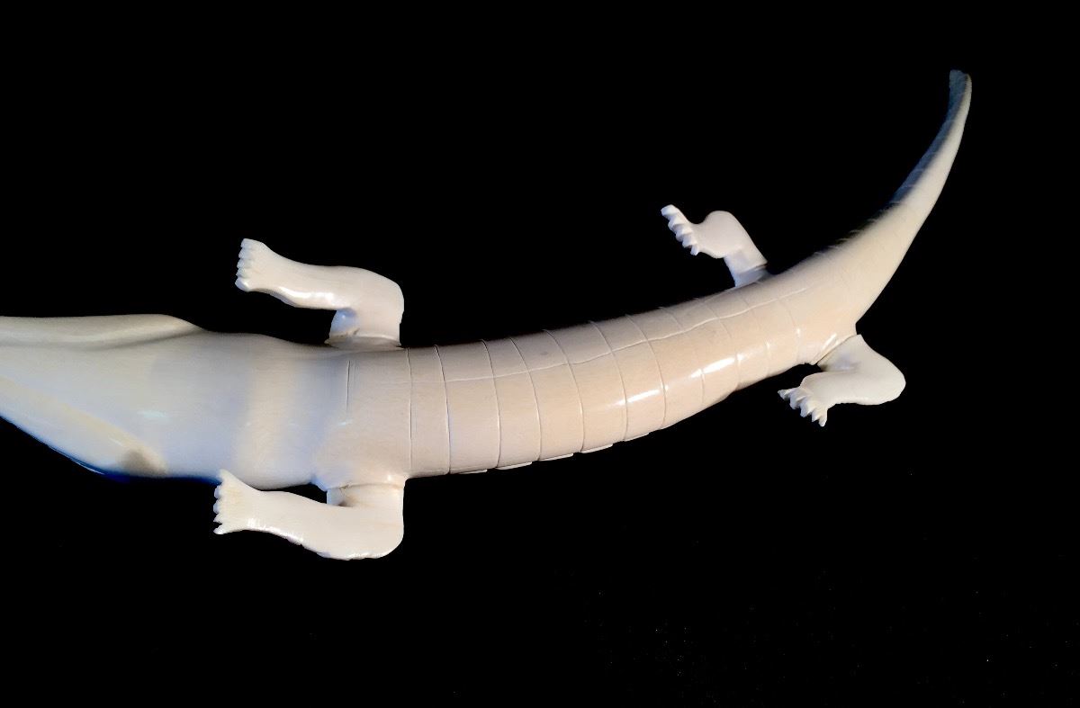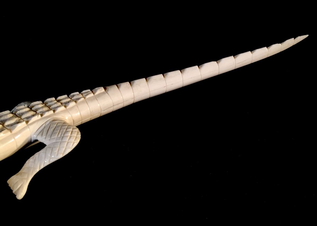 CARVED ELEPHANT IVORY TUSK DEPICTING A CROCODILE, 27'' L