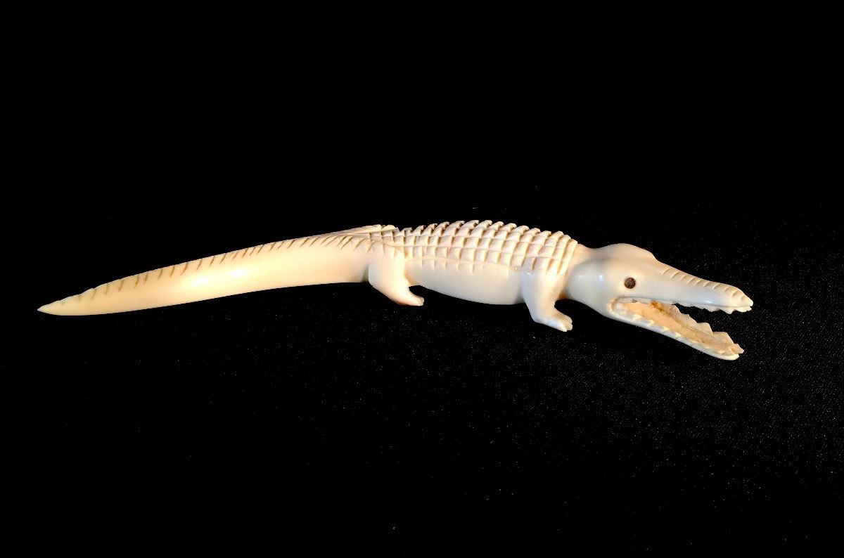 Lot 115 3 CARVED IVORY CROCODILE, 5'' AND 2 X 8'' LONG