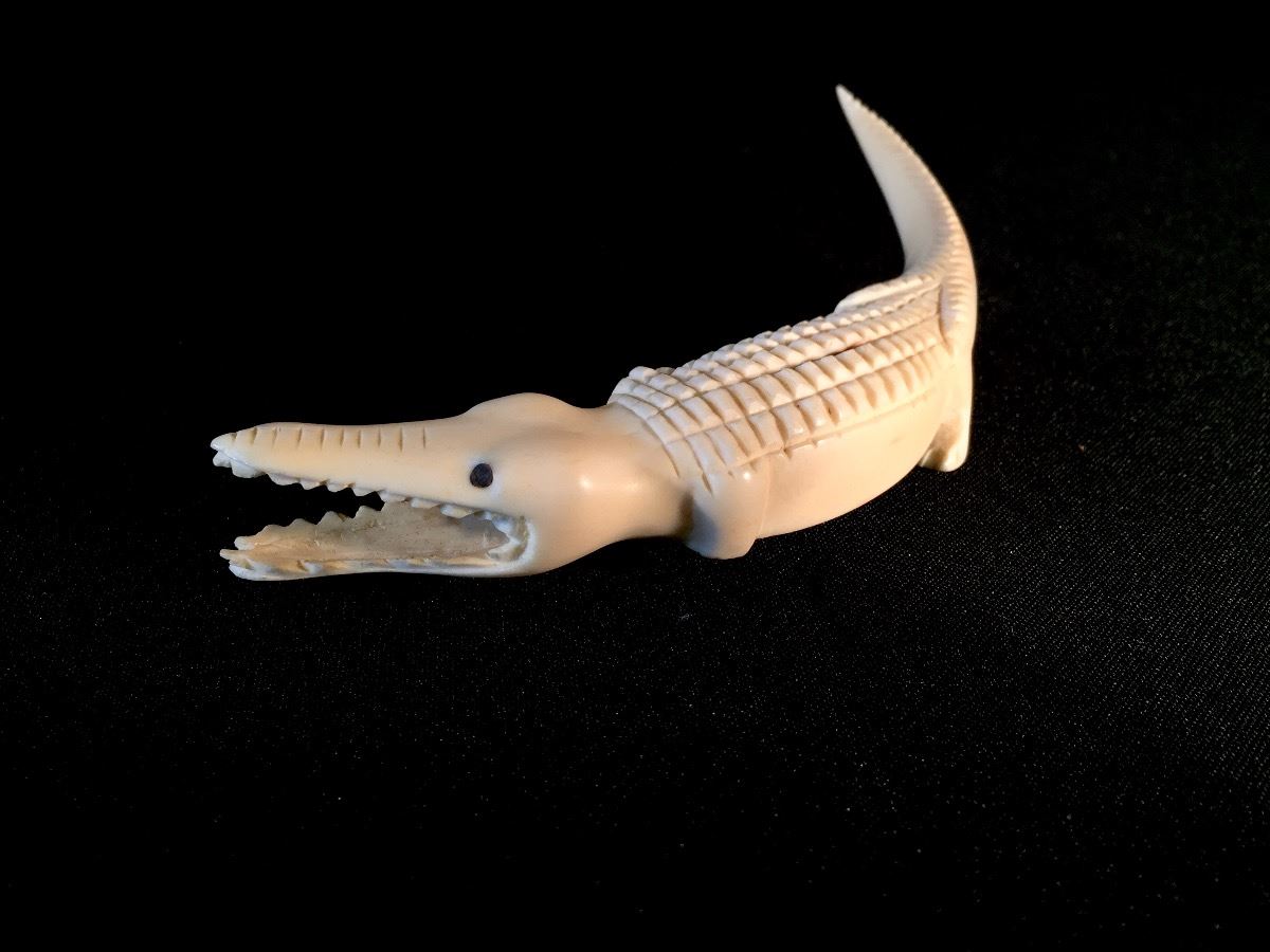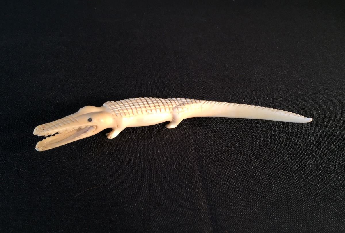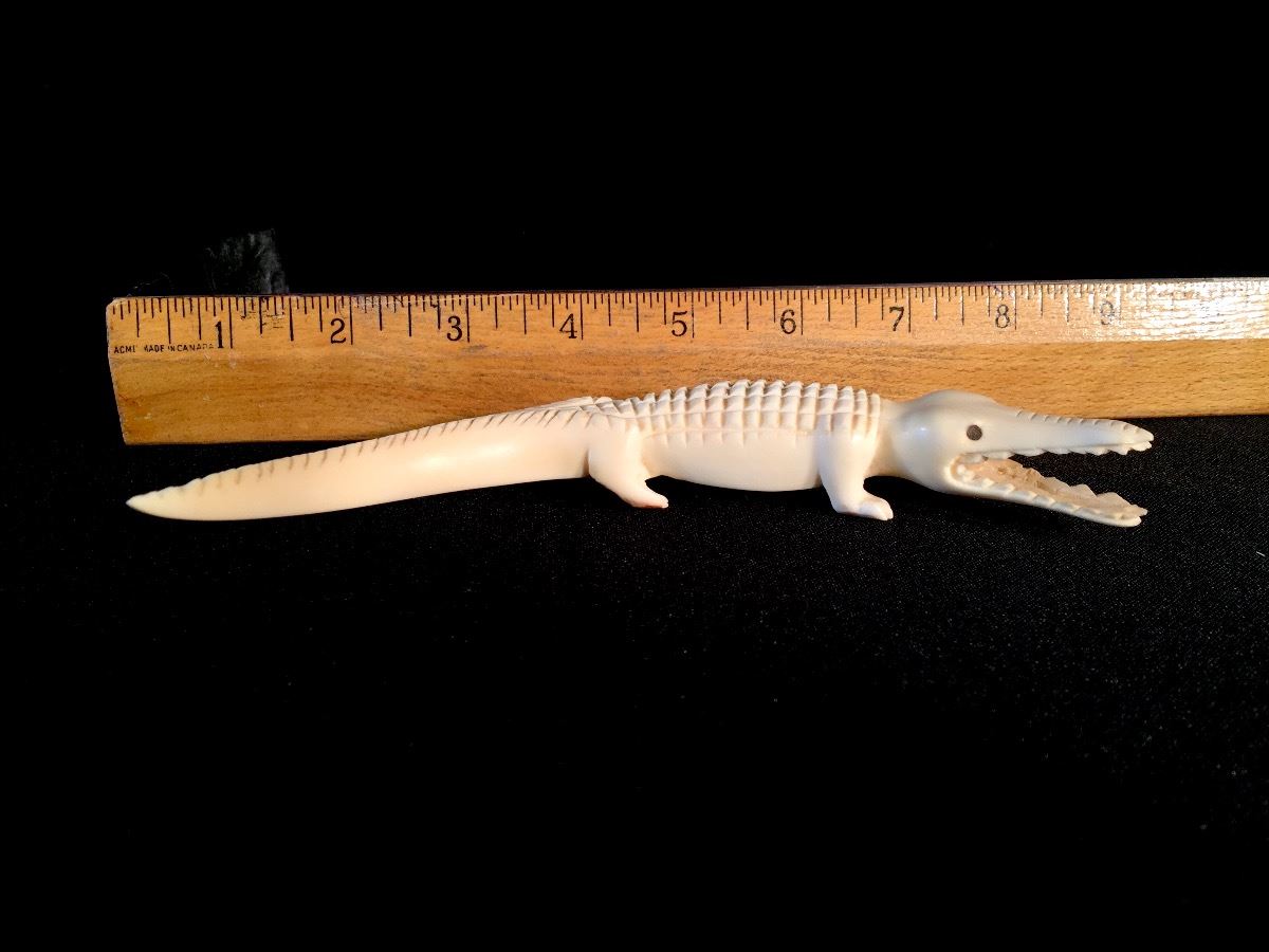 3 CARVED IVORY CROCODILE, 5'' AND 2 X 8'' LONG