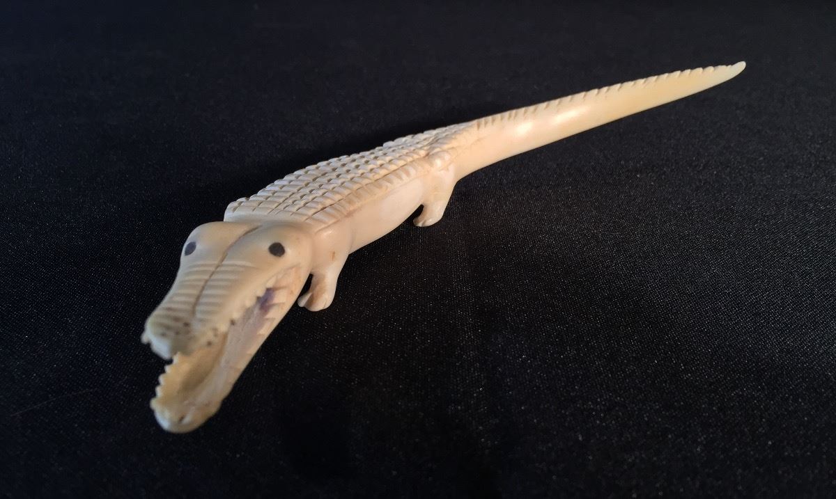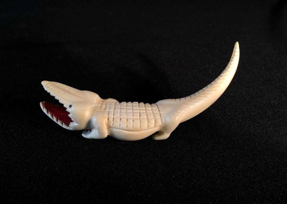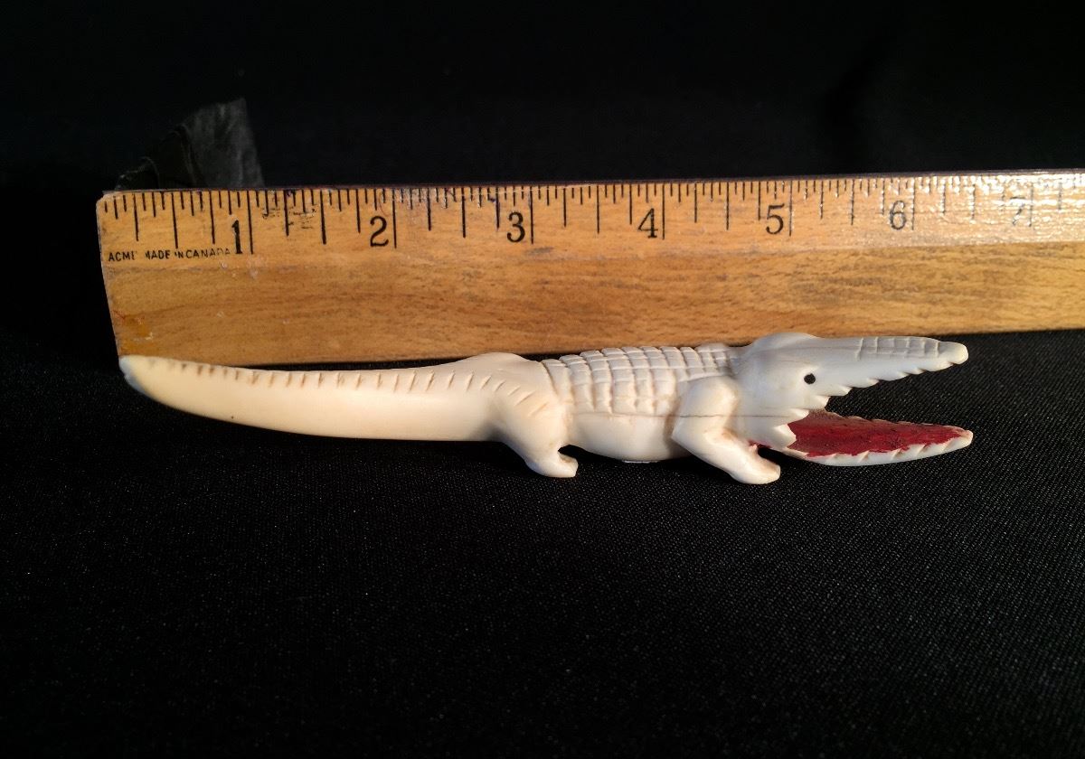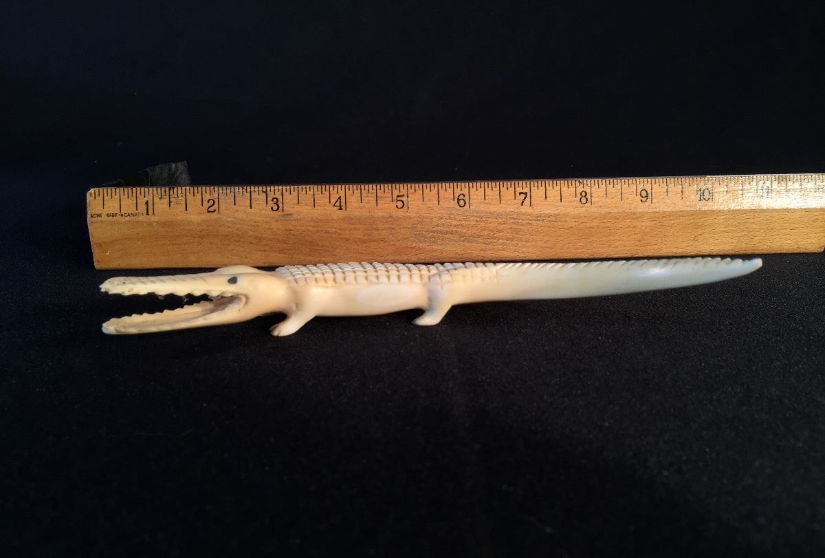 3 CARVED IVORY CROCODILE, 5'' AND 2 X 8'' LONG