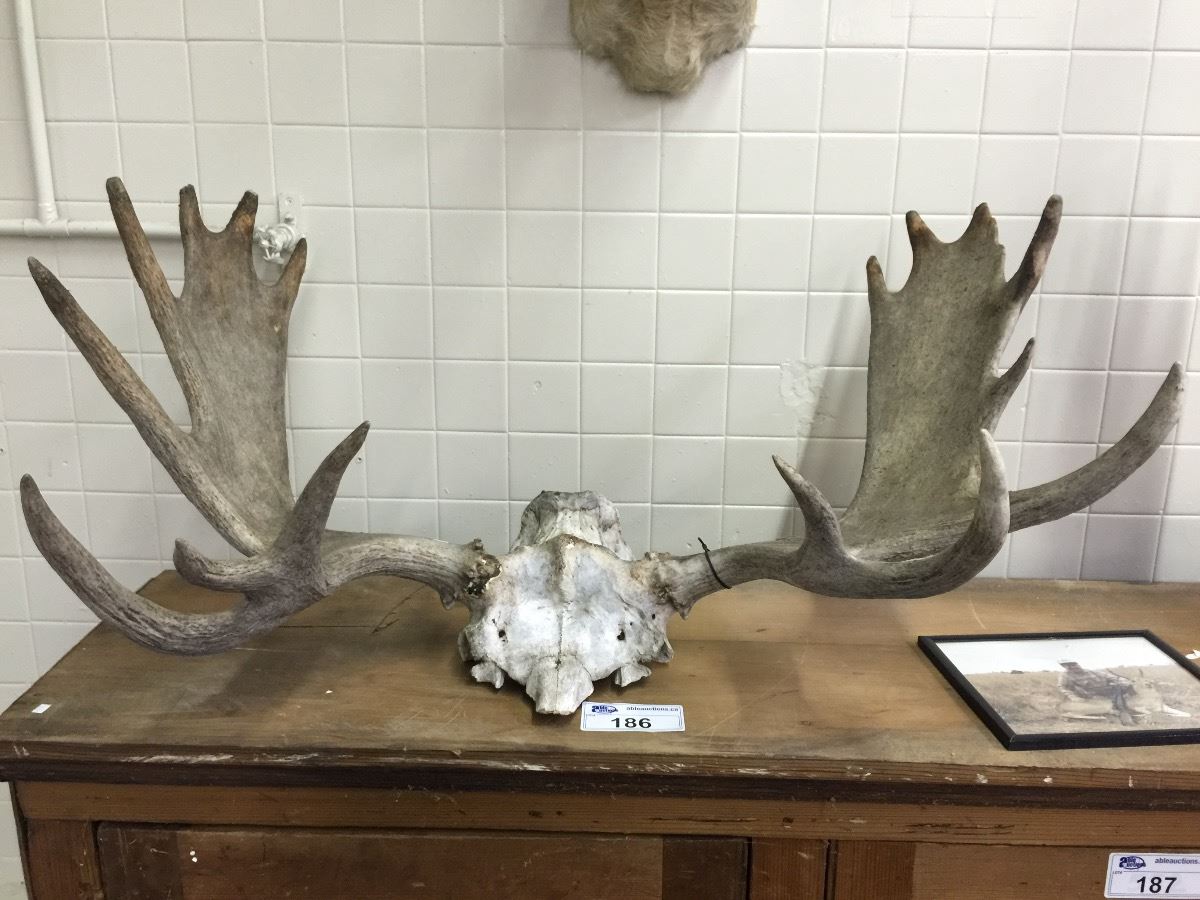 Lot 186 NORTH AMERICAN BULL MOOSE ANTLER MOUNT, 55'' WIDE