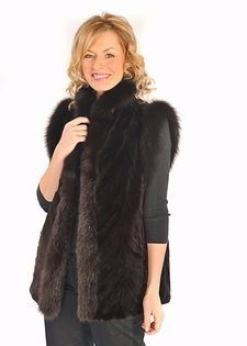 Donation: Dark Mahogany Mink Vest with Crystal Fox Mandarin Collar, Hook and Eye Closures, Free Alterations and Monogramming