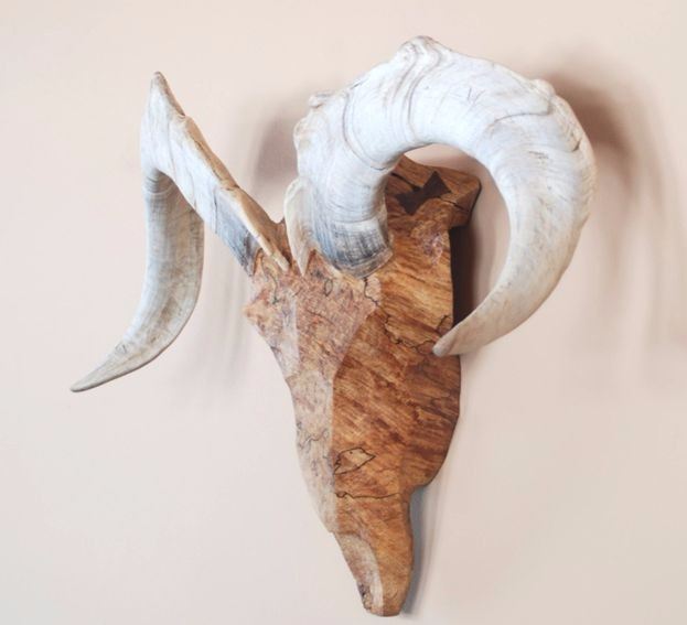 Lot 38 Carved wood skull with horns/antlers finsihed or custom work with supplied horns/antlers – any spec