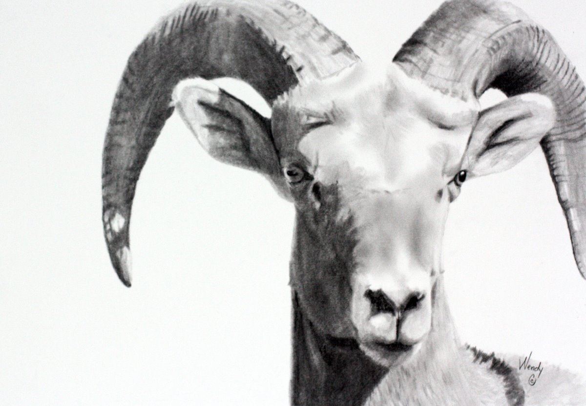 Bringing nature to life is Wendy's goal. Her inspiration comes from her life on the West Coast; the reflections of the boats in the water, birds feeding in the lagoon, or animals roaming the hillsides. This black and white portrait of a Rocky Mountain bighorn sheep features the soft touch of graphite and is a great piece for anyone's home.
