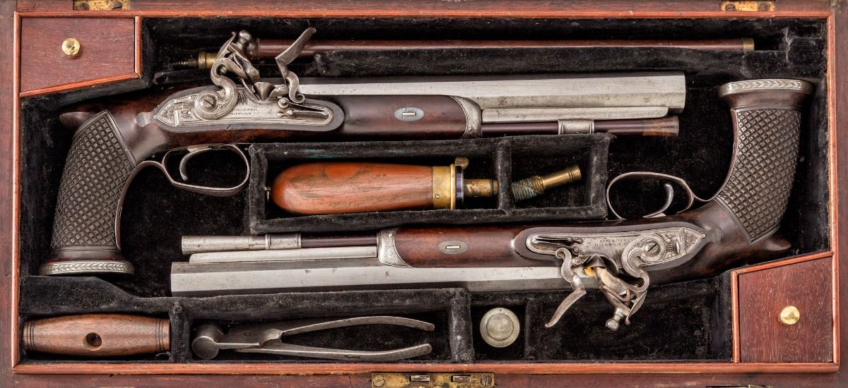 Lot 28 Cased Pr. Flintlock Dueling Pistols, by Prosser