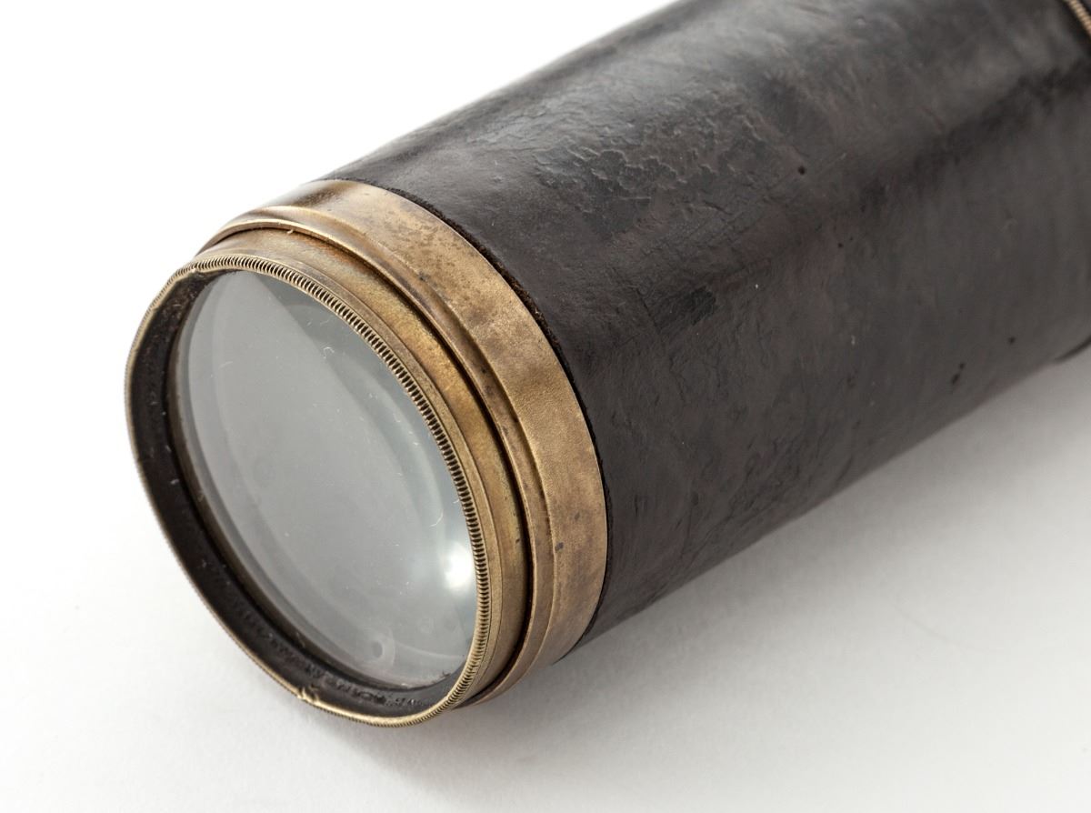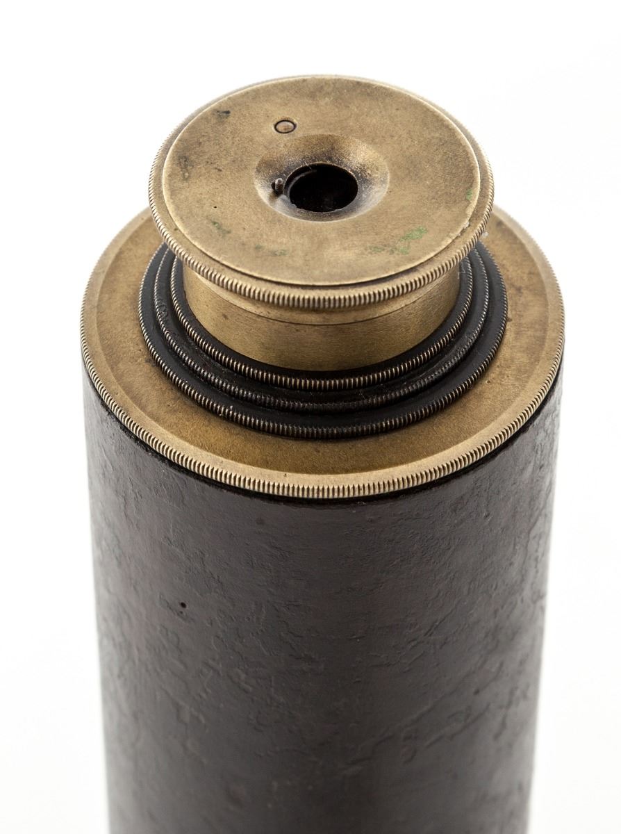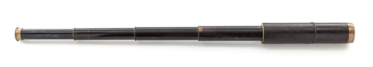 Ca. 1900 French 4-Draw Telescope, 33 power, inscribed ''Rifle Range / Power 33 Times / A. Bardon, Paris'', with original leather cover. Condition is excellent showing light finish loss to tube. Leather cover shows tight stitching. Optics are very good. Est.: $400-$600.