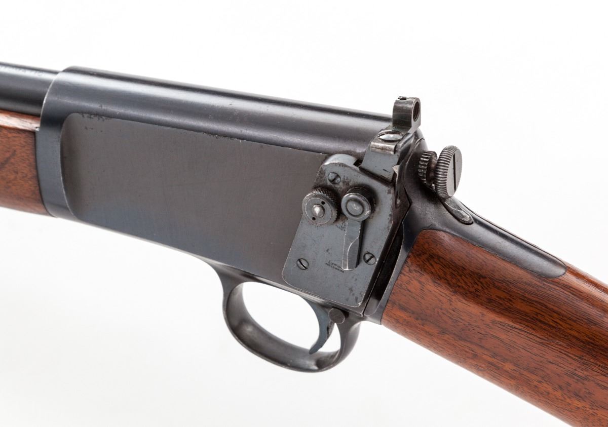 Winchester Model 1903 Semi-Automatic Rifle, #30612, .22 Auto cal., 20'' barrel, blue finish, walnut stock, with Beech's front and Lyman rear sight. Mfg'd 1906. Condition is excellent retaining approx. 95%+ original finish with light wear at high edges. Stock with minor scuffs and dings. Crisp action and bright bore. Est.: $750-$1,000. (C&R)