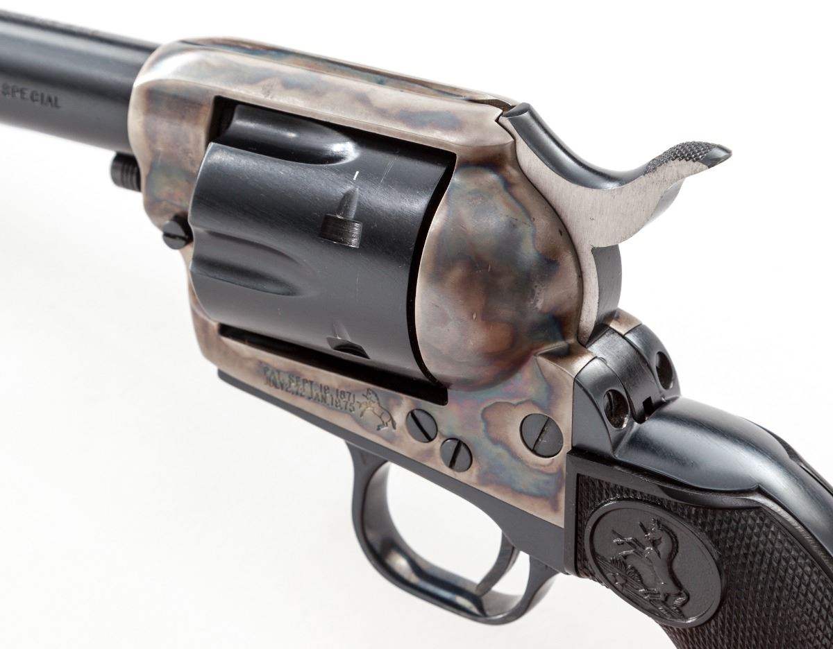 3rd Generation Colt Single Action Army Revolver, #SA05074, .44 Spec. cal., 7-1/2'' barrel, blue and case colored finish, factory checkered black plastic eagle grips. Condition is excellent. Cylinder shows very light marks from handling and very minor thinning at muzzle. Action is crisp, bore is bright. Est.: $1,200-$1,800. (Modern/PPT)