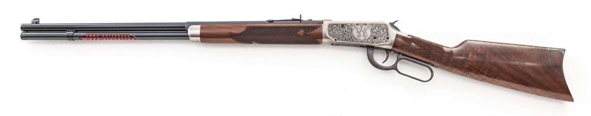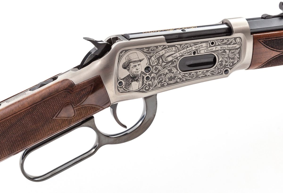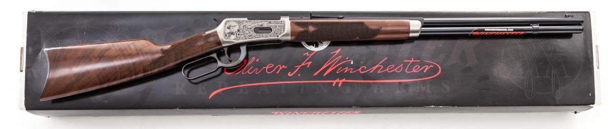 Oliver Winchester Commemorative Model 1894 Lever Action Rifle, #OW200H1663, .30-30 cal., 24'' blue half-round barrel, fancy roll engraved bright finished frame, fleur de'lis walnut checkered stock and forend. Introduced to celebrate the 200th anniversary of the birth of Oliver Winchester (1810-2010). Condition is excellent, appearing as new and unfired, in original box with paperwork, and black/red slipcover. (Former property of 1973 Heisman Trophy winner John Cappelletti, who was a first-round draft choice of the NFL LA Rams and played 10 seasons in the professional ranks.) Est.: $1,000-$1,500. (Modern)