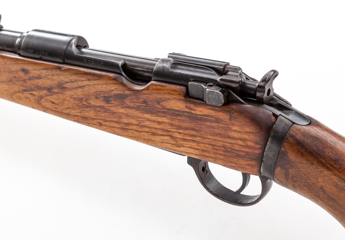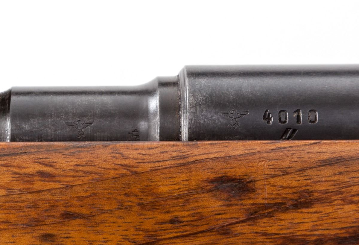 WWII German G98/40 Bolt Action Rifle, #4010v, 8mm, 24'' barrel, arsenal blue finish, walnut stock. Chamber area with ''(Waffenampt/JHV/43''. These Hungarian rifles were pressed into service with the Wehrmacht on the eastern front. Condition is very good as arsenal overhauled, with mixed parts. Stock with light general impressions. No visible import marks. Action is good, bore is fair. Est.: $800-$1,200. (C&R)