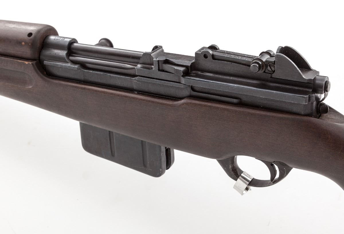 Egyptian Contract FN49 Semi-Automatic Rifle, #30571, 8mm, 23'' barrel, matte finish, European hardwood stock, with Egyptian crest at chamber and Arabic markings to rear sight. Condition is excellent as very lightly import marked beneath barrel; approx. 96% finish is retained. Stock with minor scratches at comb. Missing front band screw. Crisp action, and unbelievably bright bore. Est.: $600-$800. (C&R)