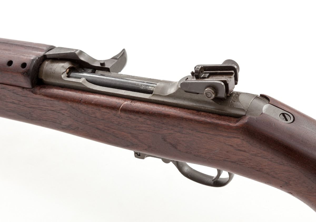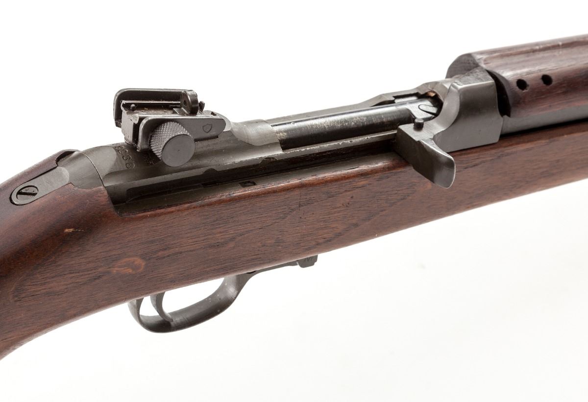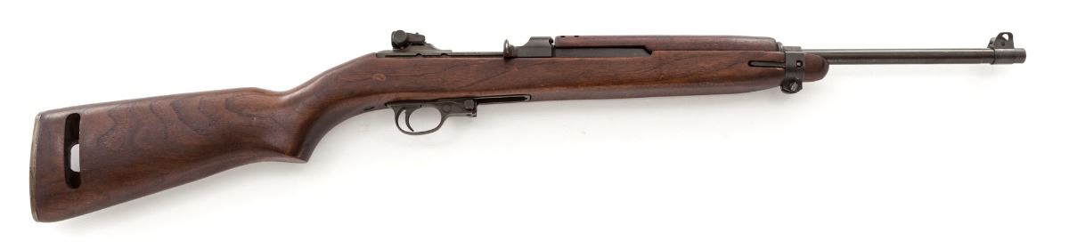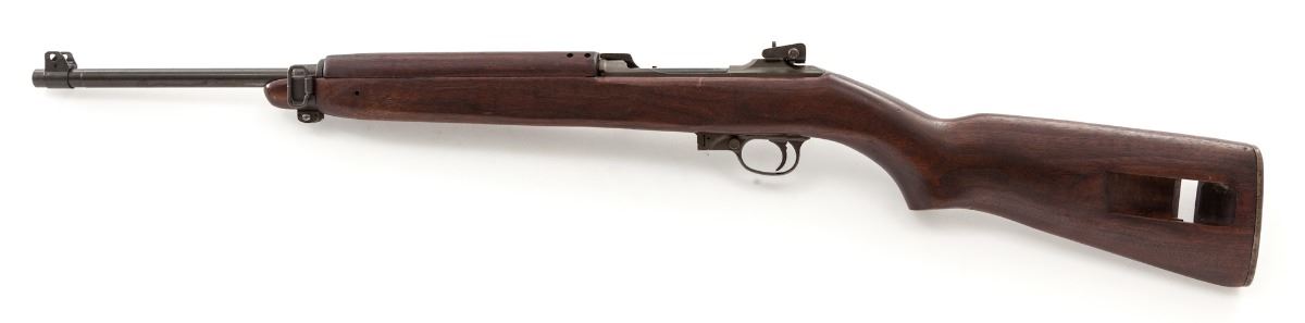U.S. M1 Carbine, by Winchester, #5789238, .30 Carb. cal., 18'' barrel, parkerized finish, low-wood oval cut stock with two-rivet handguard, push-button safety, and Type III stamped rear sight. Condition is fine to near excellent retaining approx. 94% original blue with thinning in actioning areas. Stock with light general impressions. Action is crisp, bore is bright. Est.: $1,800-$2,400. (C&R)