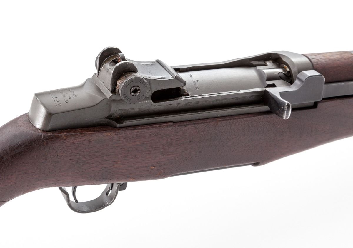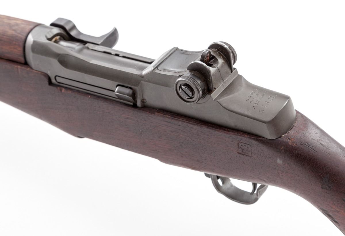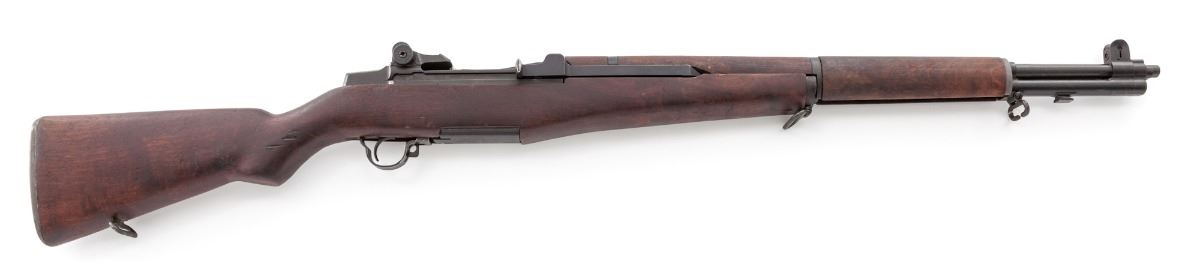 U.S. M1 Garand, by H&R, #5632192, .30-06 cal., 24'' H&R barrel dated 5-55, parkerized finish, walnut stock, DoD cartouche, with correct HRA bolt, DRC marked windage knob, HRA marked triggerguard, safety and op rod. Rifle contains 2006 dated CMP paperwork stating that this is a correct grade H&R. Condition is near excellent retaining approx. 97% original parkerized finish with very little wear in actioning areas. Stock with bruises and scuffs. Action is good, bore is bright, with lots of 1950s dried cosmoline. Est.: $1,000-$1,500. (C&R)