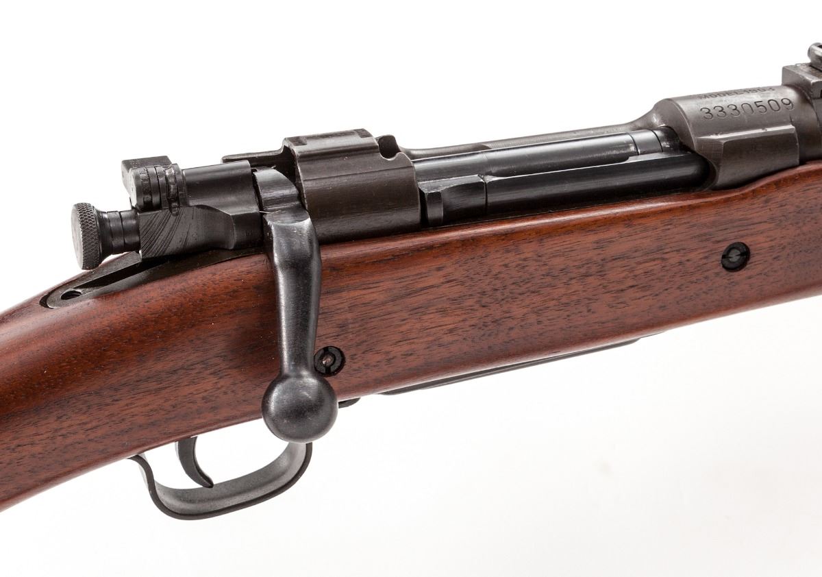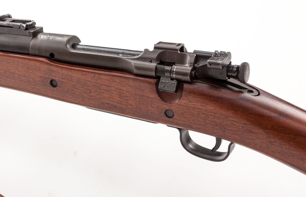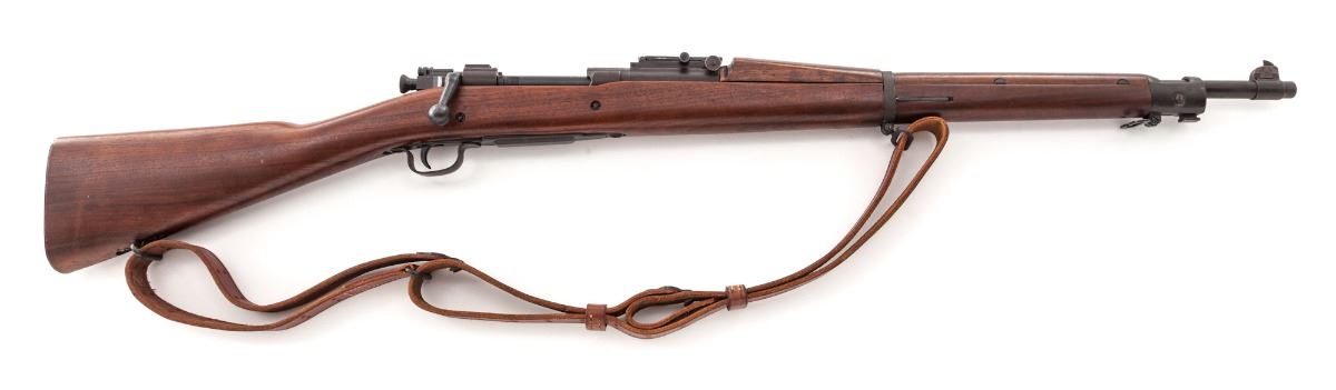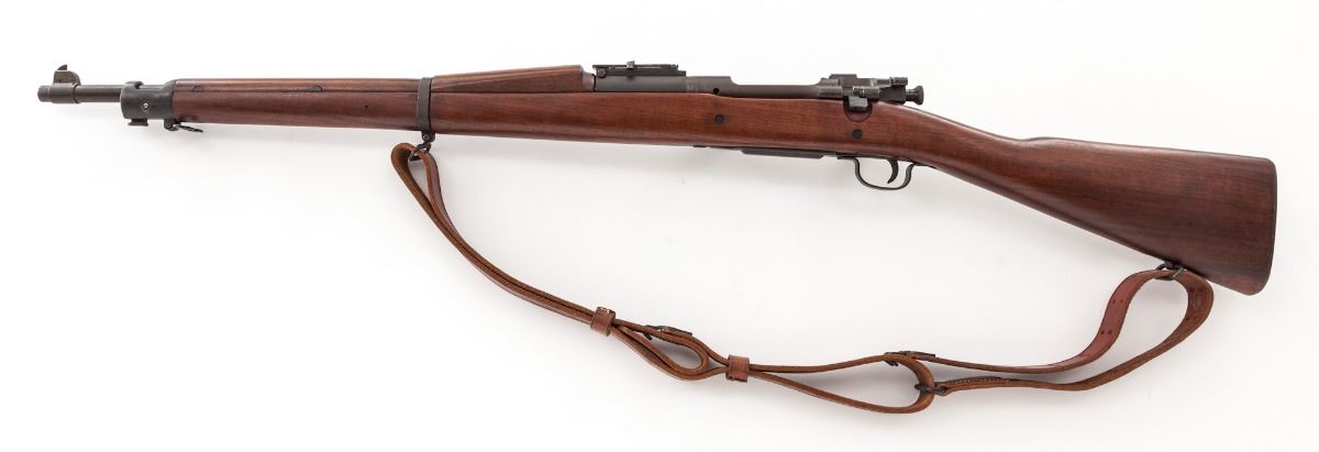 U.S. Model 1903 Bolt Action Rifle, by Remington, #3330509, .30-06 cal., 24" barrel marked "RA/12-42", blue and parkerized finish, non-proofed straight-grip walnut stock, with 03-A3 stamped buttplate, triggerguard, follower and middle barrel band. Also includes a modern Turner Saddlery M1907 sling. Condition is excellent retaining approx. 95% original finish, with most of the losses to the front sight. Unmarked stock is excellent showing just the lightest marks from handling. Action is good, bore is bright. Est.: $500-$750. (C&R)