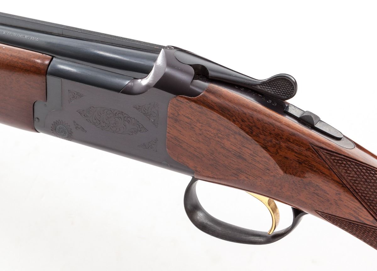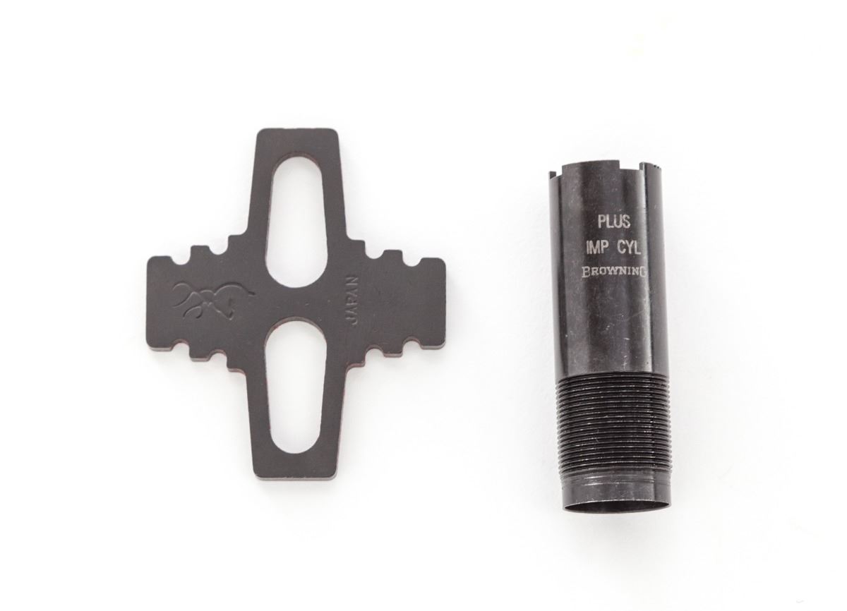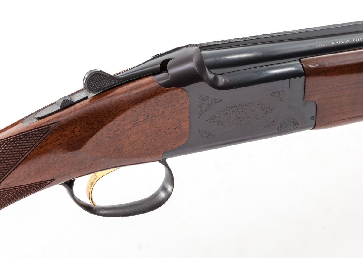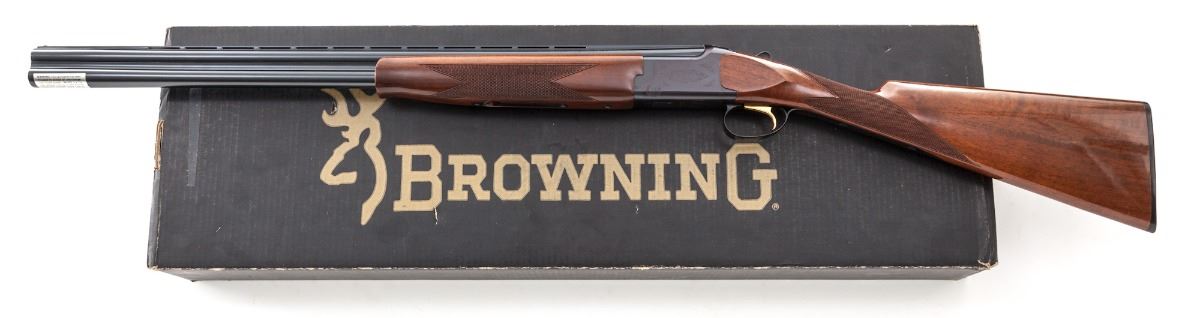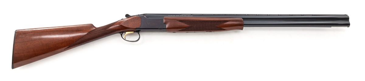 Browning Citori Superlight Grade I Over/Under Shotgun, #26357NTA33, 20 ga., 2-3/4'' chs., blue finish, 26'' barrels with matted 1/4'' ventilated rib and front silver bead, three Invector-Plus choke tubes (F, M, IC), ejectors and gold-plated inertia trigger, with top-tang combination safety and barrel selector. Checkered straight-grip stock and Schnaubel forend are gloss finished walnut with a 14-1/4'' length of pull to black plastic Browning buttplate; weight is 6-3/8 lbs. Mfg'd ca. 1996, in original box with papers and choke wrench. Condition is excellent with minor powder residue in the bores and a few handling marks; frame has a slight plum cast. Est.: $900-$1,200. (Modern)