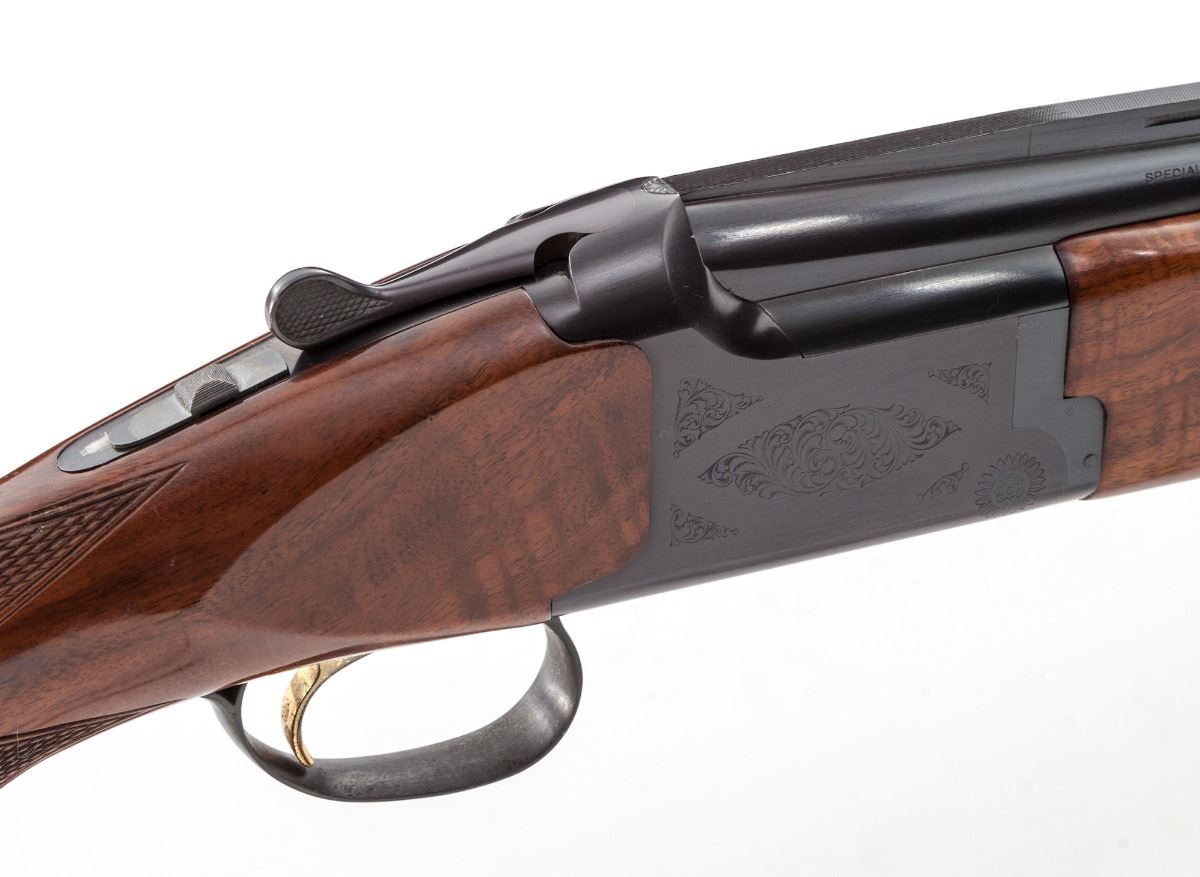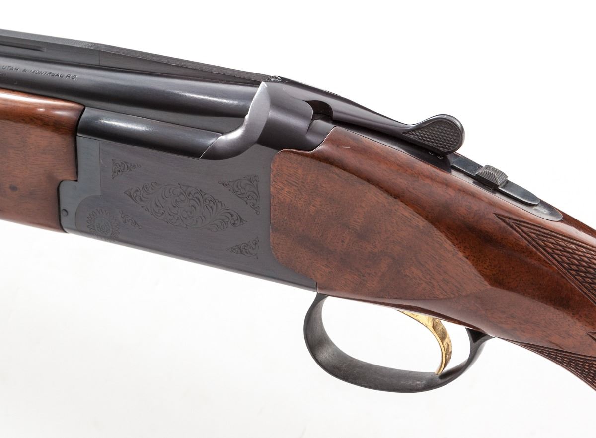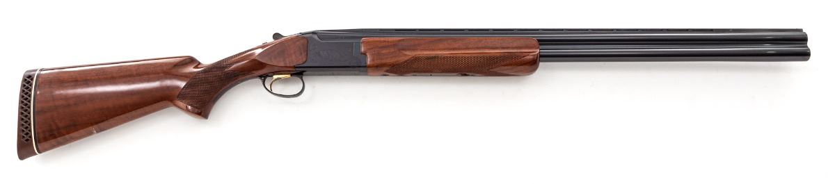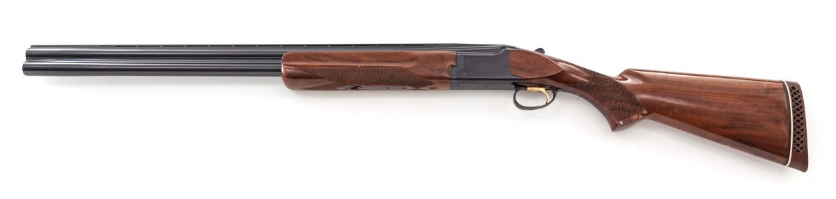 Browning Citori Grade I Over/Under Shotgun, #07232PW153, 12 ga., 3'' chs., blue finish, 28'' barrels with matted 5/16'' ventilated rib and silver front bead, Invector chokes (1 full and 3 IC), gold-plated inertia trigger, ejectors and a combination manual top-tang safety with barrel selector; frame has standard Grade I light scroll engraving; checkered pistol-grip stock and beavertail forend are straight-grain walnut with a 14-1/4'' length of pull over a ventilated 1'' Browning Whiteline recoil pad; weight is 8-1/4 lbs. Overall condition is 97% with indications of light use. Frame and barrels have a few spots of oxidation with assembly marks along the barrels. Lower tang blue and trigger plating are fading. Stock has scattered handling and storage marks. Action is tight with bright bores and strong ejectors. Est.: $600-$900. (Modern)