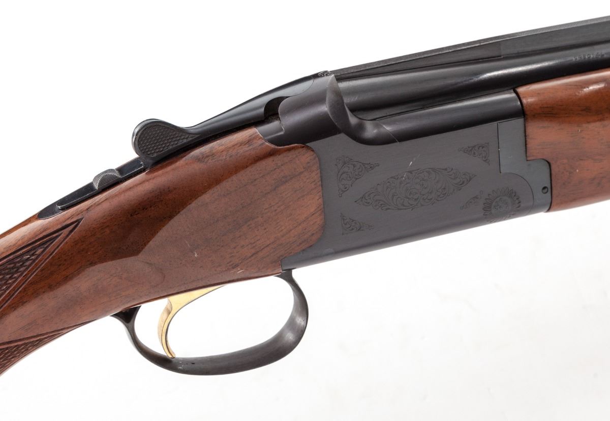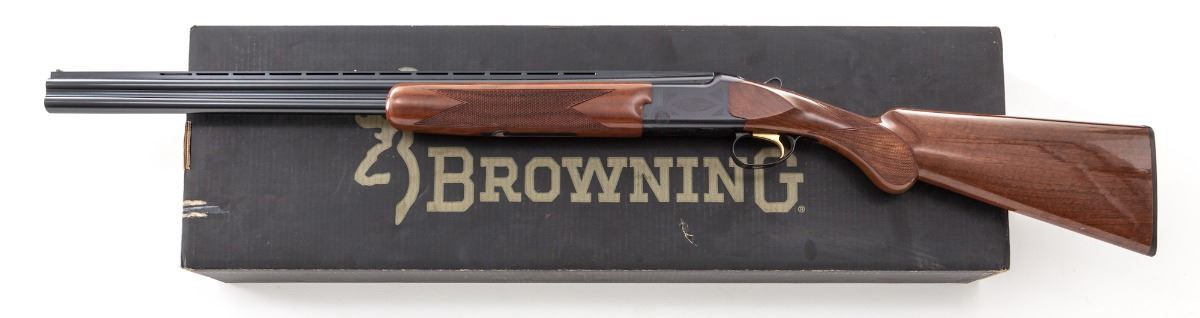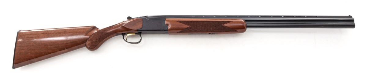Browning Citori Grade I Lightning Field Over/Under Shotgun, #28784MM131, 28 ga., 2-3/4'' chs., blue finish, 26'' barrels with matted 1/4'' ventilated rib, front and middle white beads, Full/Mod. Invector choke tubes, ejectors and gold-plated inertia trigger with combination manual top-tang safety and barrel selector; checkered round knob stock and field forend are straight-grain walnut with a high-gloss finish. Length of pull is 14-1/4'' to a black plastic Browning buttplate; weight is 6-1/2 lbs. Mfg'd ca. 2000. Original box and papers are included. Condition is very good showing moderate use of the lower barrel, with light oxidation in the frame and scattered handling marks. Est.: $800-$1,200. (Modern)