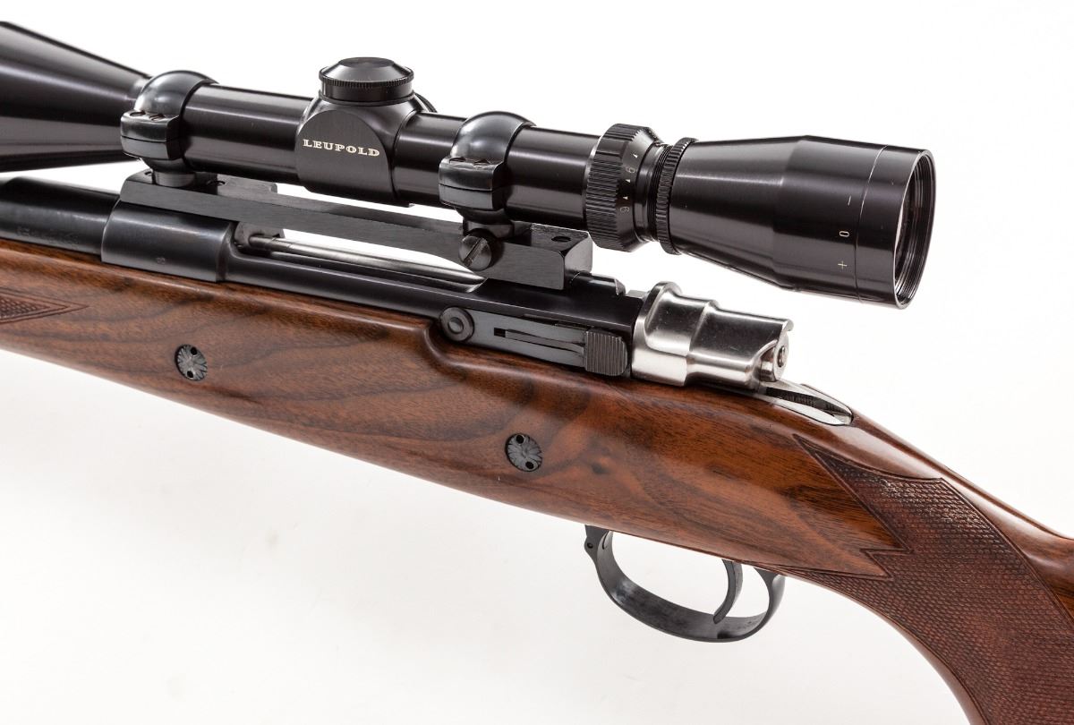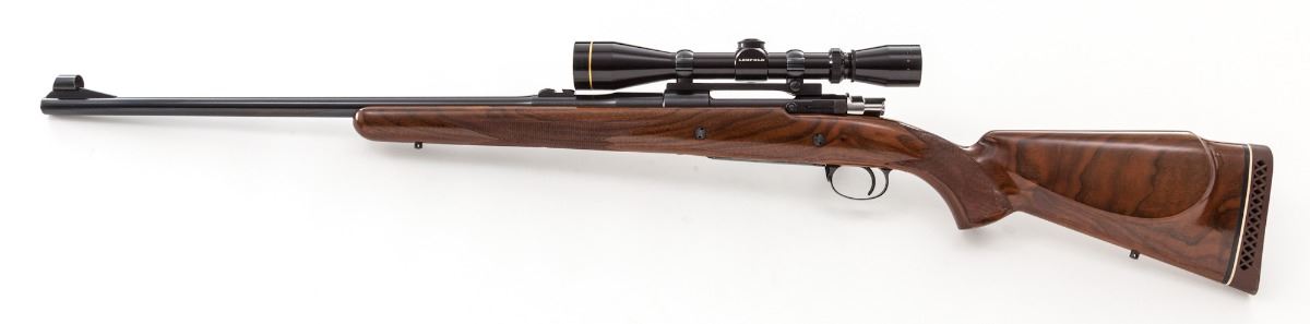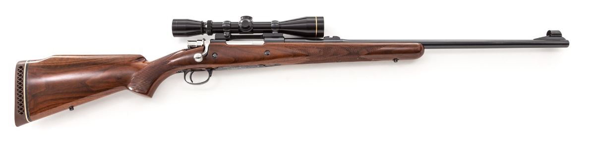 Belgian Browning Bolt Action Rifle, #7L43501, 7mm Rem. mag. cal., 24'' barrel, blue finish, checkered walnut cheekpiece stock, with Browning rubber butt pad. Topped with a Leupold 3-9x40 scope on Redfield rings and mounts. Condition is excellent showing little use and with just light marks from handling. Minor discoloration to stock that should rub out. Rear sight aperture has been removed to clear scope; front sight is present. Action is crisp, bore is bright, scope optics are clear. Est.: $750-$1,000. (Modern)