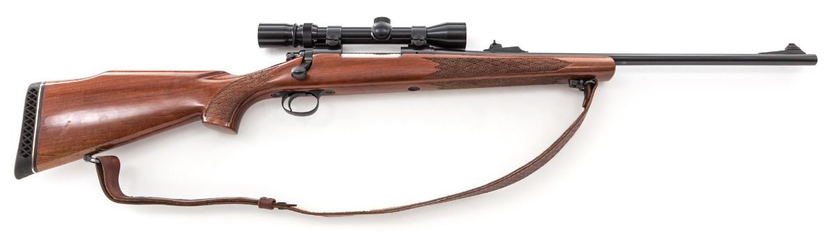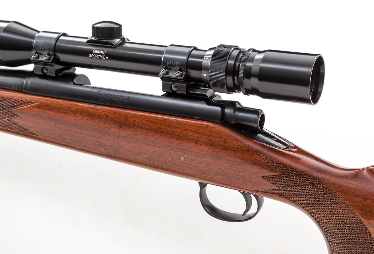 Remington Model 700 BDL Bolt Action Rifle, #A6290232, .270 Win. cal., 22'' barrel, blue finish, pressed checkered cheekpiece mahogany stock, with commercial leather sling. Topped with a Bushnell Sportview 3-9x32 scope on Weaver rings and mounts. Condition is fine showing light field use, with minor impressions to stock. Action is good, bore is mirror bright, scope optics are clear. Est.: $500-$750. (Modern)