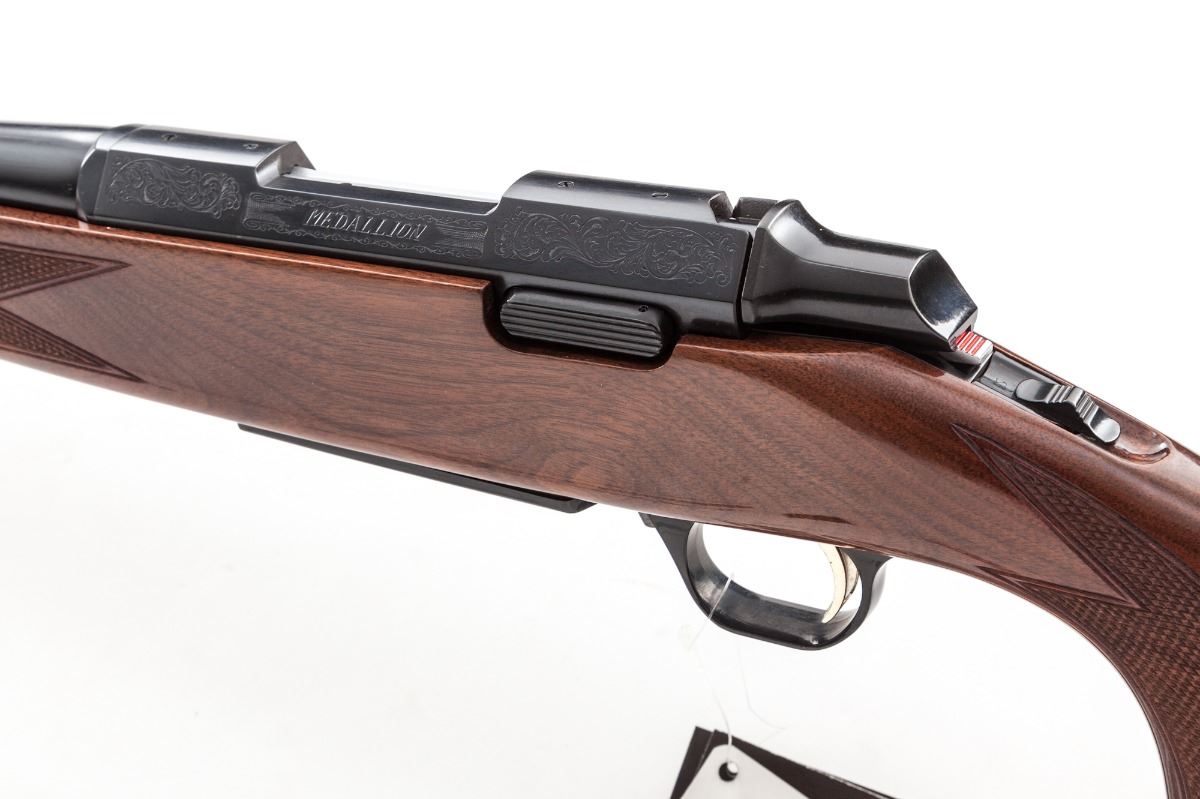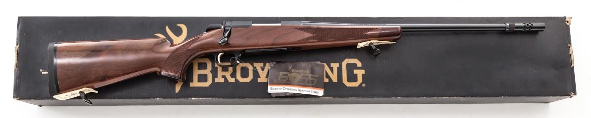 Browning A-Bolt Medallion II Bolt Action Rifle, #98936NW317, .22-250 cal., 22'' barrel, blue finish, checkered American walnut stock with gloss finish, and sling swivels. Condition is excellent, appearing as new and unfired. Stock shows one very minor mark to gloss finish. In original box with paperwork. Est.: $750-$1,000. (Modern)