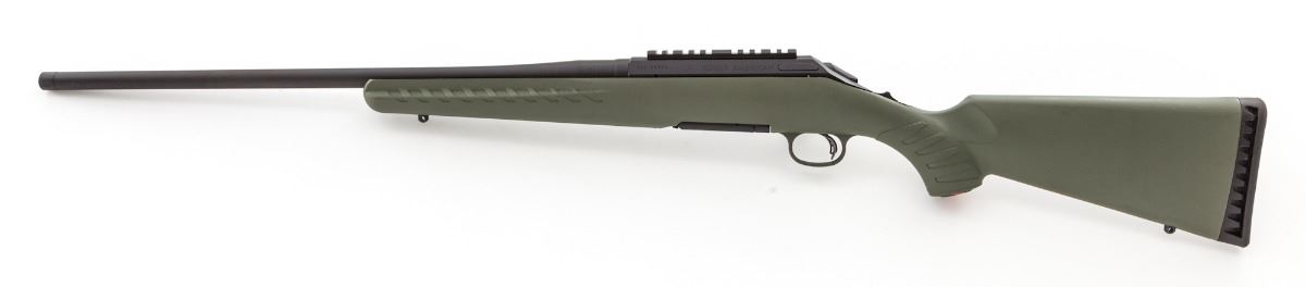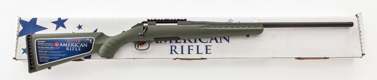 Ruger American Predator Bolt Action Rifle, #693-59864, .223 cal., 22'' barrel, matte blue finish, green synthetic stock, rubber recoil pad, sling swivel eyelets, Ruger scope rail to top of frame, adjustable trigger, with one factory magazine, gun lock and owner's manual, in original box with matching end label. Condition is excellent, appearing as new. Est.: $350-$450. (Modern)
