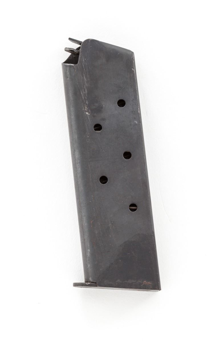 Hammerli Model 100 1948 Olympic Free Pistol, #1269, .22 LR cal., 11-1/4'' octagon barrel, blue finish, adjustable walnut pistol-grip stock and standard schnabel type forend. Right side of frame with Olympic ring marked ''London 1948''. In black leatherette and green velveteen lined Hammerli range box. Condition is excellent with very light edgewear to barrel. High polish blue frame shows minor scratches in actioning area. Grips with even smoothing and little original varnish remaining. Very crisp action with feather-light trigger pull and mirror bright bore. Exterior of box shows toning to metal corner protectors and scuffs to simulated leather at high edges. Est.: $750-$1,000. (C&R)
