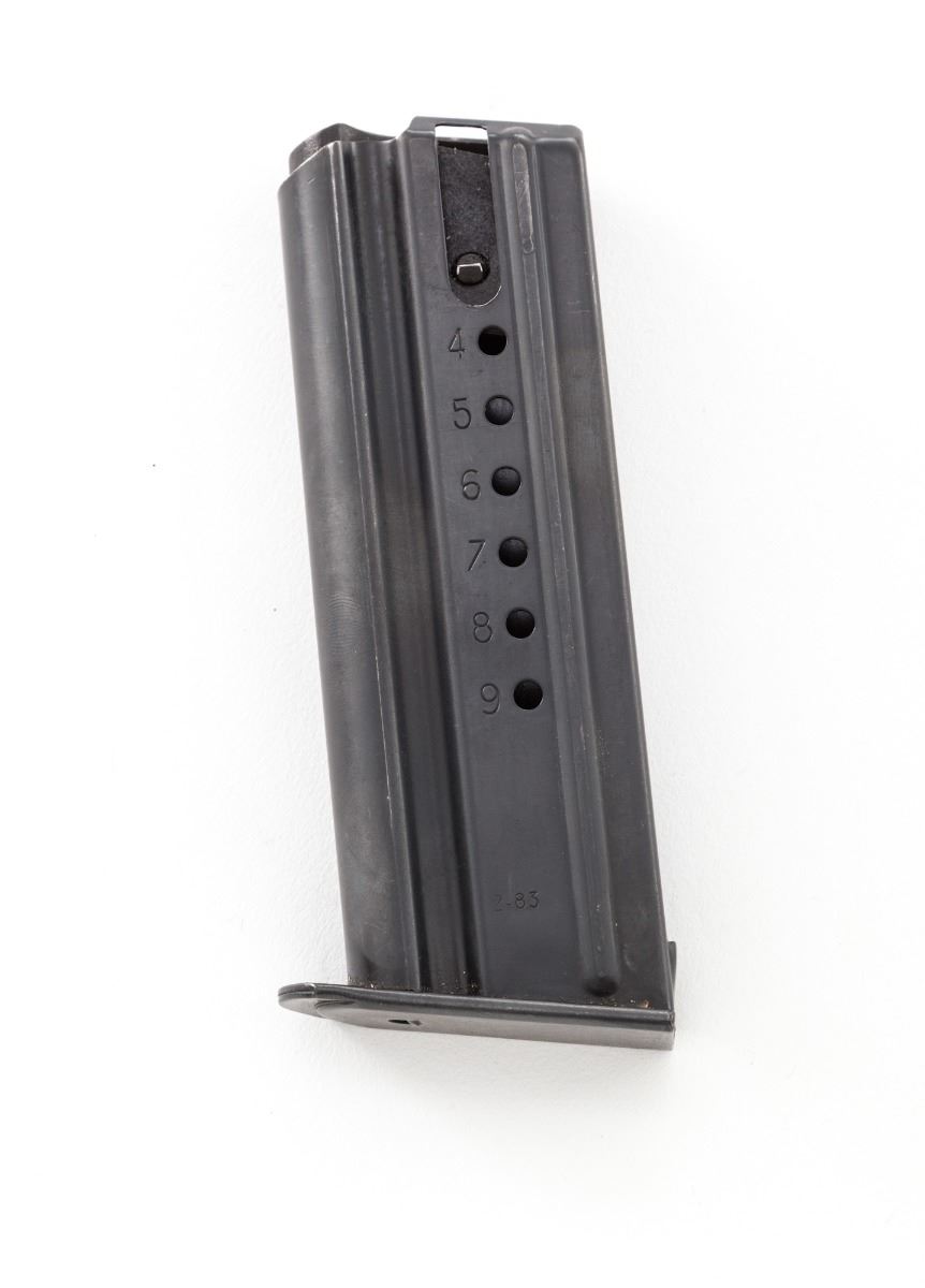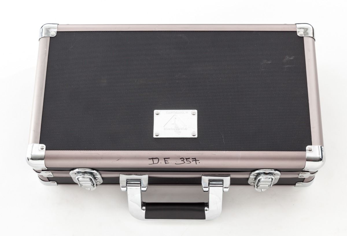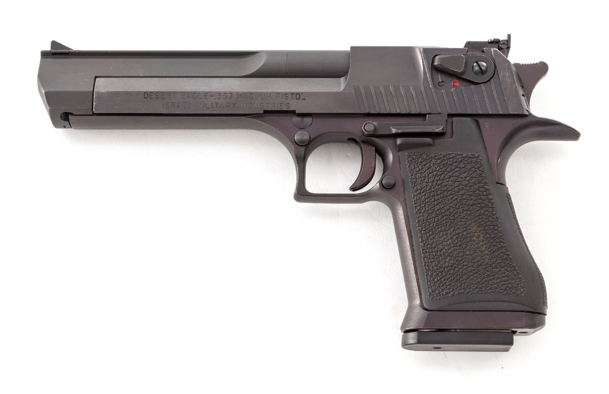Desert Eagle Semi-Automatic Pistol, #5620, .357 mag. cal., 6-1/4'' barrel, matte finish, factory pebblegrain black plastic grips, with two (2) magazines, LPA three-dot sights, in Vanguard carrying case. Condition is excellent. An early pistol with plum-colored frame showing only light highpoint edgewear and mild range use. Est.: $1,000-$1,500. (Modern)(Not available to Calif. residents.)