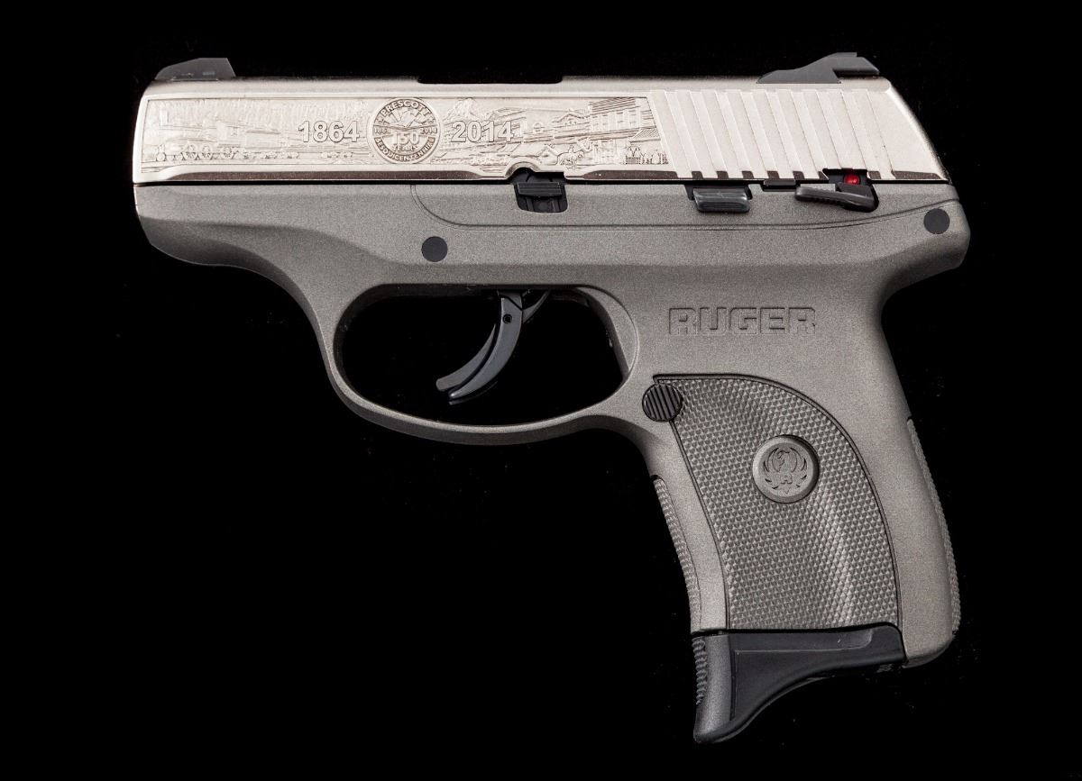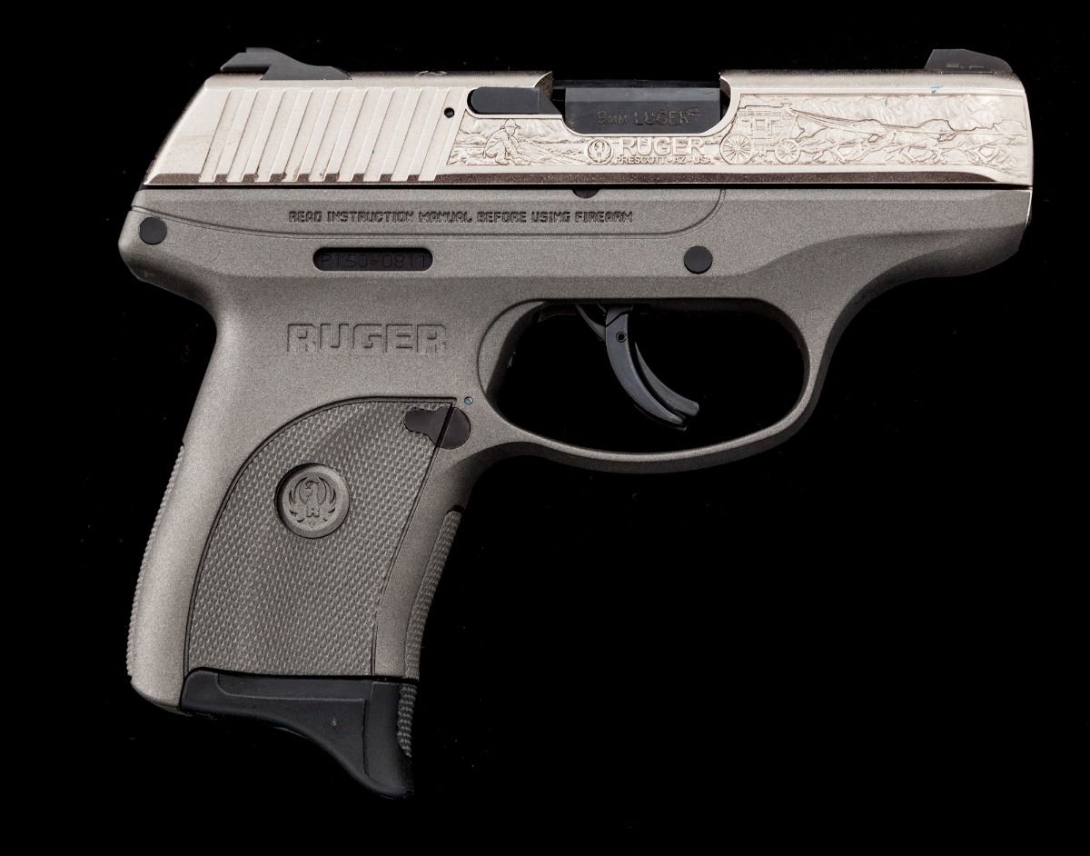 Ruger LC9S, Prescott, Arizona Commemorative Semi-Automatic Pistol, #P150-0811, 9mm, 3'' barrel, gray nylon frame, roll-engraved bright slide, with factory pistol rug, one magazine and instructions, in original box. Condition is excellent, appearing as new and unfired. Est.: $350-$500. (Modern)(Not available to Calif. residents.)