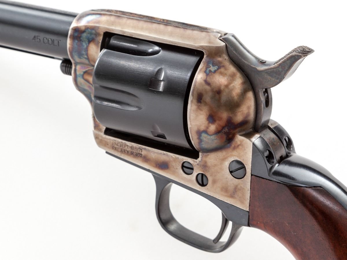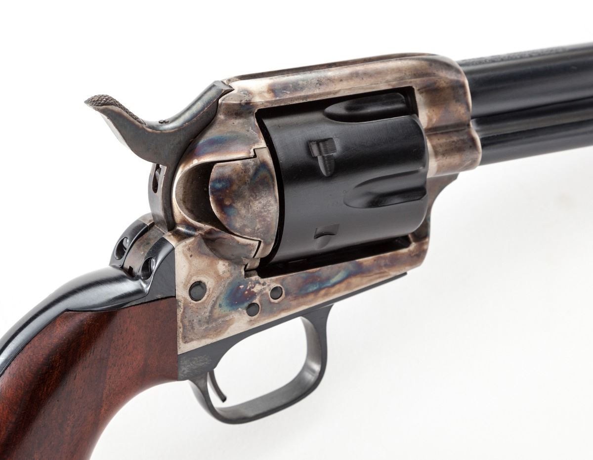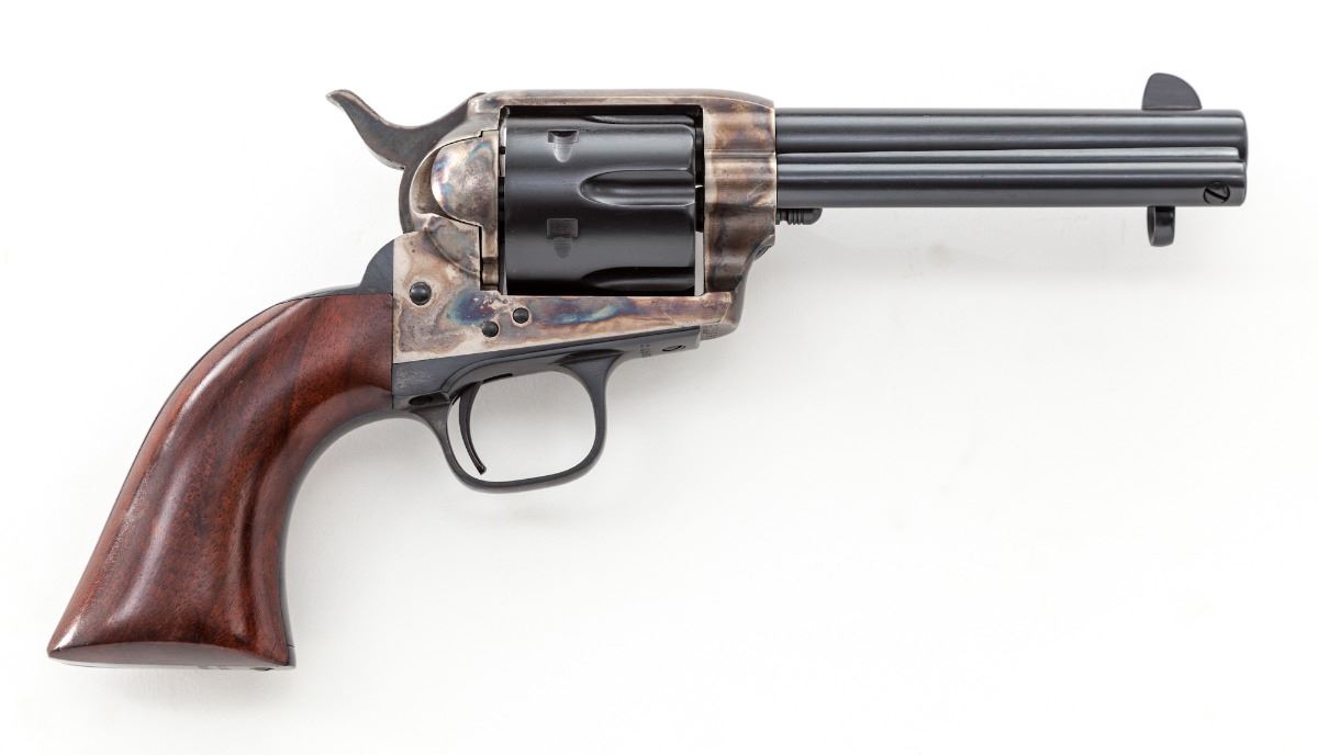 Cimarron Single Action Army Revolver, #C05096, .45 Colt cal., 4-3/4'' barrel, blue and case hardened finish, with one-piece walnut stained hardwood grips. Condition is excellent showing little use with minor handling marks to grips. Est.: $450-$600. (Modern/PPT) (Consecutive to below lot.)