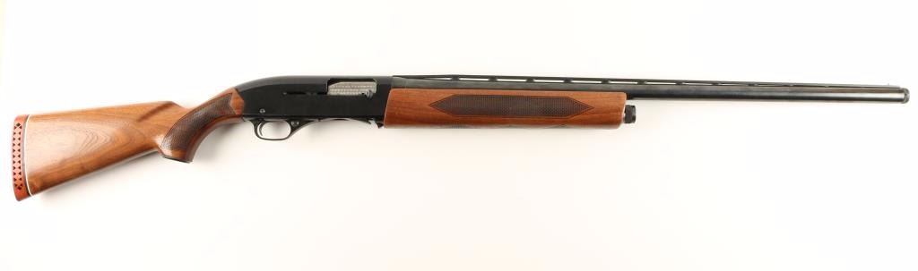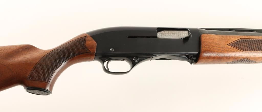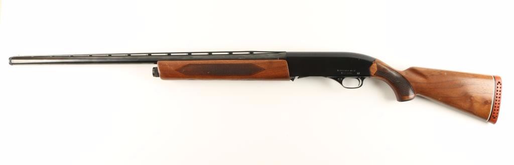 Blued and black alloy semi-automatic shotgun with a 28" barrel, Modified choke tube, elevated sight rib with front bead sight, wood furniture with pressed checkering panels, factory red rubber recoil pad with white line spacer. Bluing is in very good shape with only a nick across the sight rib. Bore is bright and shiny. chambered for 2-3/4" shells. The alloy receiver/trigger group is in good shape with only a few marks on the front of the trigger guard. Action works well. Condition is excellent. *Modern Firearm*