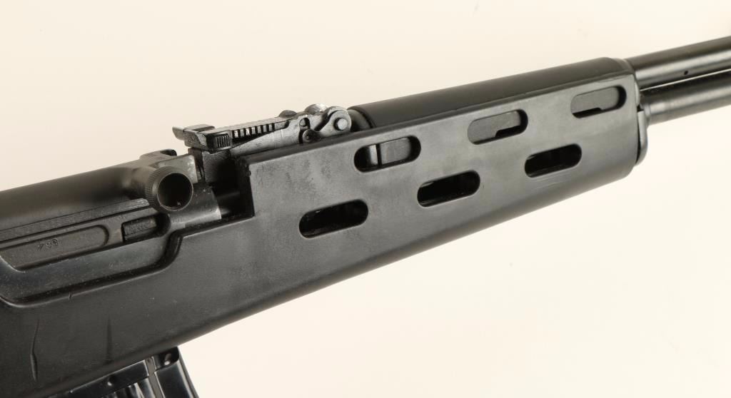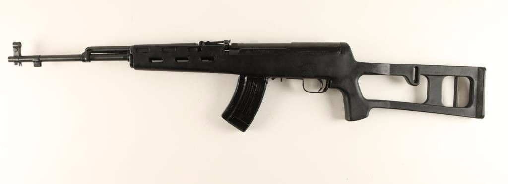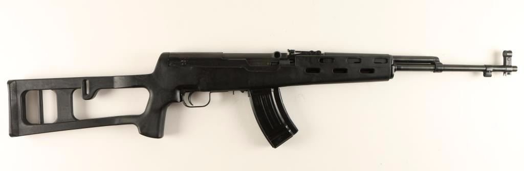 Chinese made gas-operated semi automatic rifle chambered in 7.62x39mm. Features a blued finish, 20.4" barrel, hooded front sight, adjustable tangent rear sight, safety selector, two sling points, detachable 20 round magazine, and one-piece black polymer pistol grip shoulder stock. Finish shows only light handling wear with a few scratches on top of the receiver. Action is smooth, bore is excellent, and stock is fine. Condition is near excellent. ***Modern Firearm***