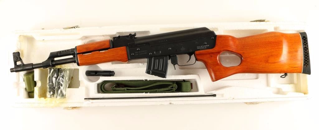 Chinese made copy of the AK-47 rifle chambered in 7.62x39mm. Features a blued finish, hooded ront sight, adjustable tangent rear sight, 10 round magazine, safety selector, smooth trigger, sling points, and wood forend, handguard & thumbhole pistol grip shoulder stock with rubber recoil pad. Includes styrofoam box with two extra magazines, sling, cleaning kit, cleaning rod, and documents. Finish shows no signs or use or wear. Action is crisp, bore is perfect, and wood stocks are fine. Likely unfired since the factory. Condition is like new in box. ***Modern Firearm***