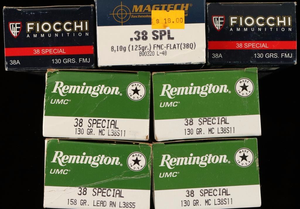 Consisting of 150 rounds of Remington 130 grain metal core, 50 rounds of Remington 158 grain lead round nose, 100 rounds of Fiocchi 130 grain full metal jacket and 50 rounds of Magtech 125 grain full metal case flat nose ammunition