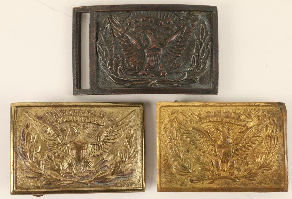 Very nice lot of 3 different designs. Each one is different in displaying the American eagle with outstretched wings, feathers, and sun rays with wreaths. This is a very handsome selection of U.S. military buckles.