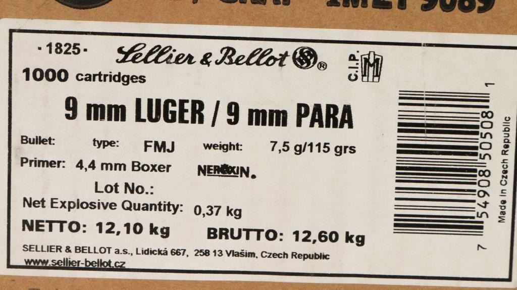 Lot 344 1,000 Rounds of Sellier & Bellot 9mm Ammo