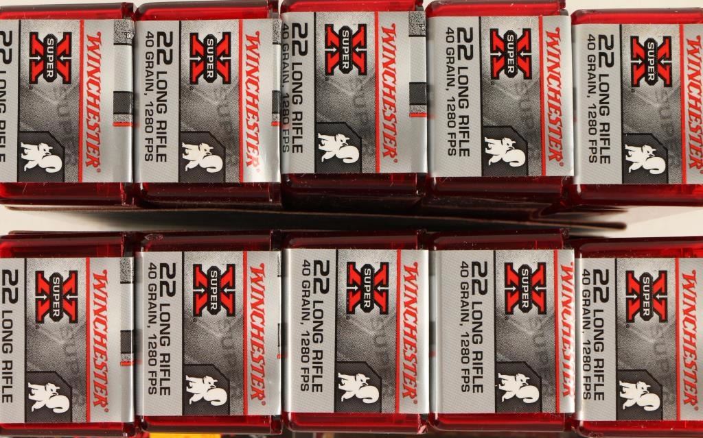 Consisting of: 1,000 rounds of Winchester Power-Point 40 grain copper-plated round nose, 500 rounds of Winchester T-22 Target 40 grain lead round nose, 200 rounds of Winchester Varmint HE 37 grain copper-plated segmenting expansion, 250 rounds of Winchester Super X 37 grain copper-plated hollow point, and 200 rounds of Winchester Wildcat 22 high velocity lead round nose ammunition.