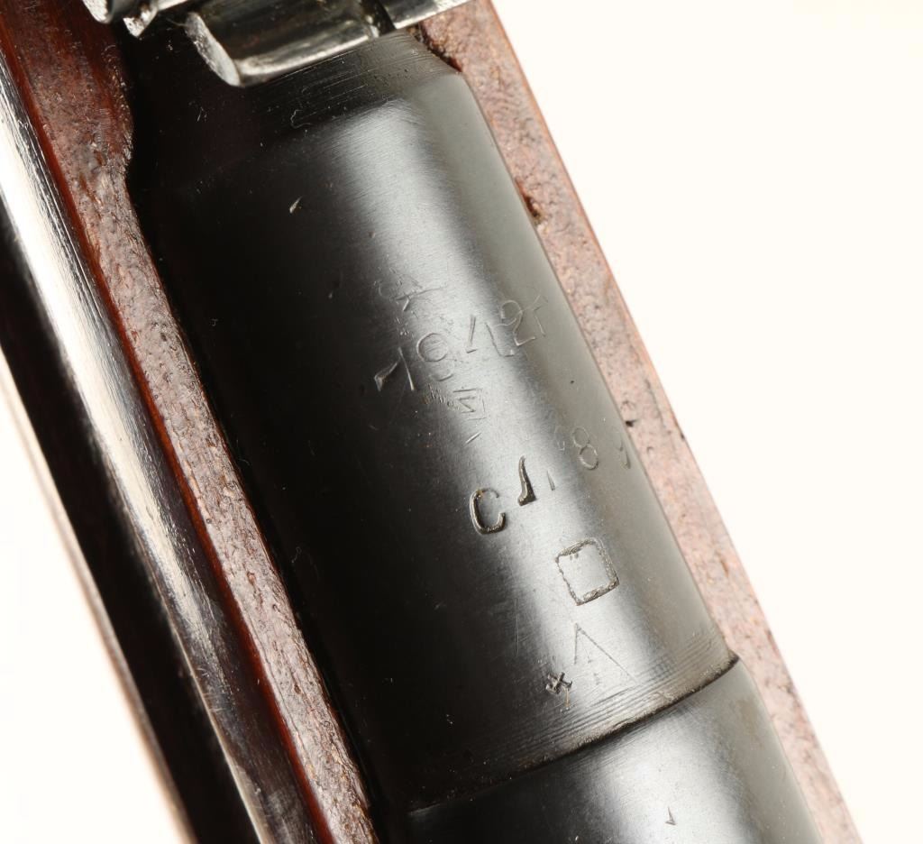 Blued bolt-action Soviet military rifle with a 29" barrel, Izhevsk stamped with a 1942 breech date, matching serial numbers on receiver/bolt/buttplate with a re-stamp to match on bottom metal, cleaning rod. Import marked by CAI. Wood has been refinished but shows vestiges of Soviet stamp and others. Finger grooves have sharp edges. There are rubs and dings but no cracks or chips. Bore is mirror bright with sharp rifling. Action works well. Condition is very good to excellent as refinished and in cosmoline. *Modern Firearm*
