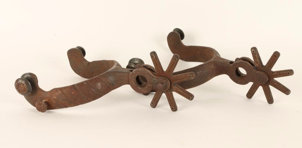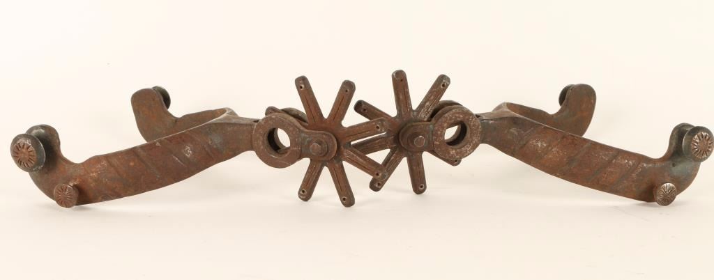 Unmarked with molded arms and large rowels. 'PRG' by each rowel. Show rust, use and age.