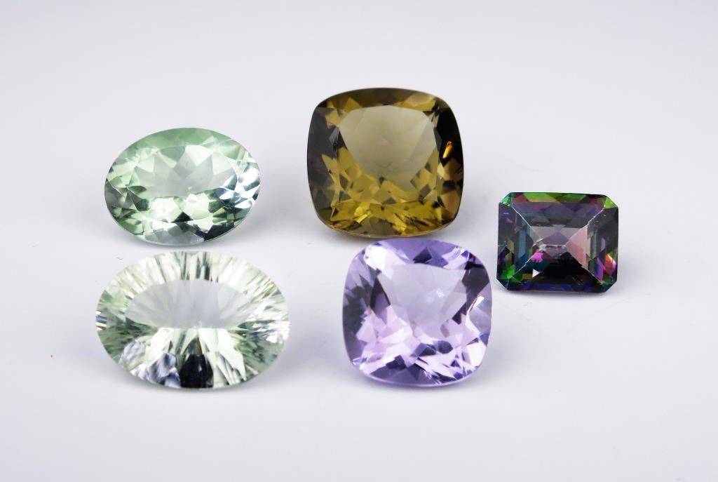 Featuring; Smoky Topaz, Amethyst, Mystic Topaz, and Green Amethyst weighing over 55.00 carats. Nice stones for jewelry.