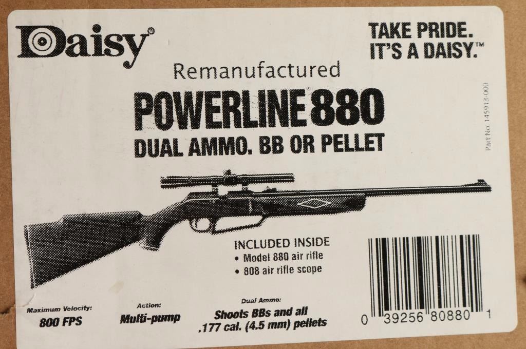 Daisy's most popular air rifle! The 880 shoots both BBs and pellets, and it does so with amazing power. This multi-pump pneumatic sends ammo roaring downrange! BBs go up to 750 fps (Never shoot BBs at hard objects!), and pellets go up to 715 fps. You can adjust power and velocity by the number of pumps you put into the rifle (up to 10 pumps). The synthetic molded woodgrain Monte Carlo stock has a raised right-hand cheekpiece and checkering on the grip and forearm. The front sight is fiber optic, the rear sight is fully adjustable but is not fiber optic. For more accuracy, mount a scope, red dot or laser on the 11mm dovetails on the receiver (made of engineering resin). It's a BB repeater (holds 50 BBs) and a single-shot pellet shooter. Take this rifle plinking, target shooting or if you just want to have fun! It's lightweight, so you can shoot for hours. (1)Is like new in the box. (1) IS in working condition but shows a lot of use and has dings and mars and has a loose lever.