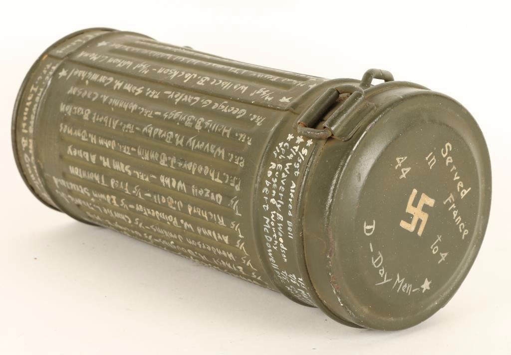 All of D-Day men of PFC Warren W. Caper's names are painted on container. "Served in France 44 to 4 D-Day men".