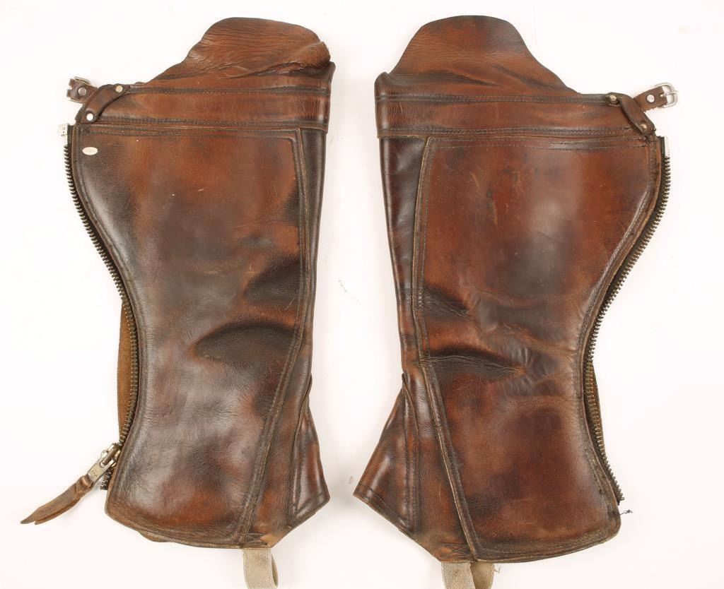 Smooth brown leather with Zip up sides worn by motorcyclists circa 1930's-40's.