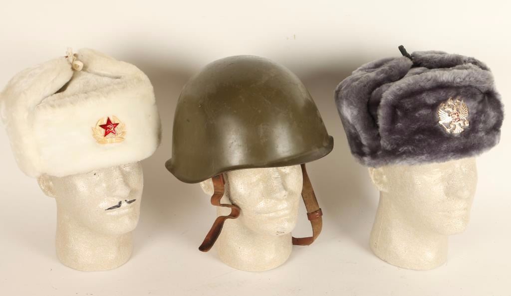 Including 2 winter hats and 1 green military helmet all of which are quality reproductions.