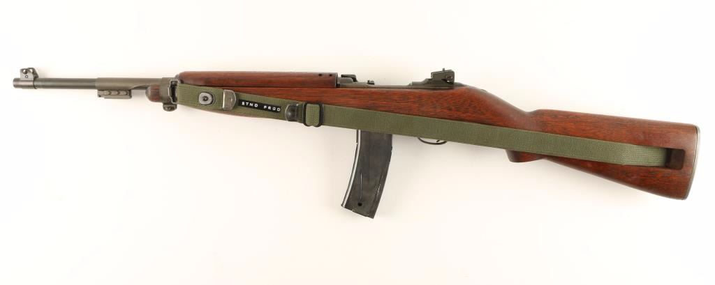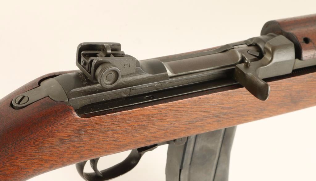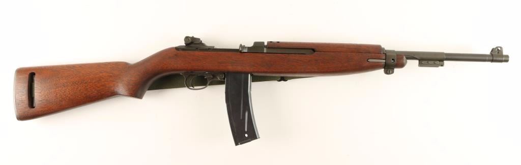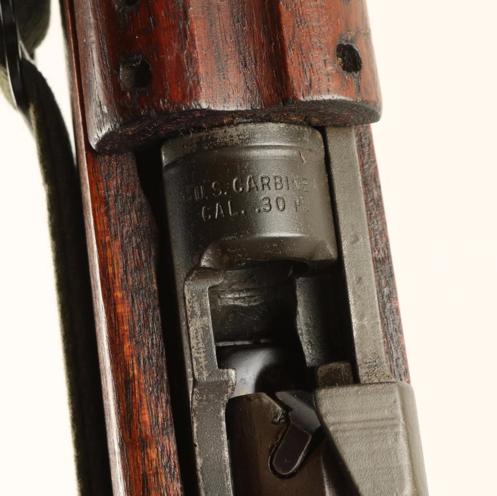 Sn: 2098634 Rebuilt U.S. Military contracted semi-automatic rifle chambered in .30 Carbine, circa 1943. Features a parkerized finish, 18" Underwood barrel dated 11-43, winged front sight, adjustable rear aperture sight, wide barrel band with bayonet lug, canvas sling & oiler, low-wood handguard with narrow groove, oval cut oiler slot, rotary style safety, 30 round magazine, smooth trigger, flat bolt, and a later wood shoulder stock with no visible markings. Rifle retains 80% parkerized finish with flaking on receiver. Action is smooth, bore is excellent, and wood stocks are fine. Condition is excellent as vintage. ***C&R Firearm*** ***Modern Firearm***