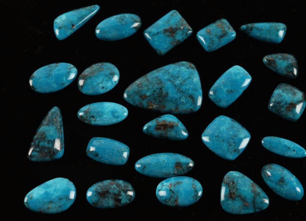 Brilliant blue color, various shapes and sizes. 23 stones, 173 grams, 865 carats. All of which have been stabilized. Ready for jewelry.