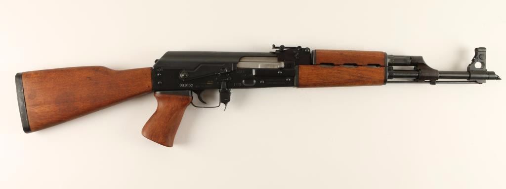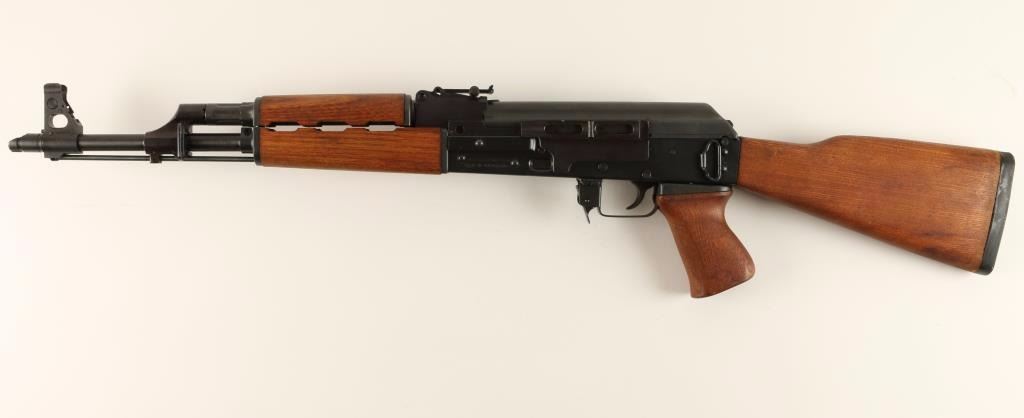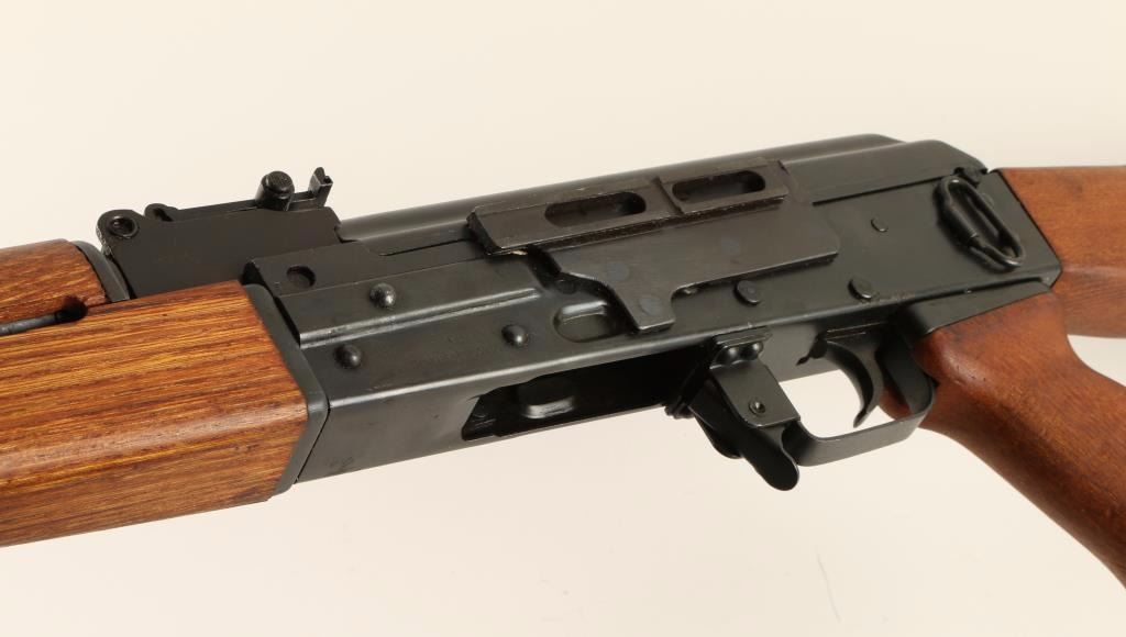 Yugoslavian copy of the AK-47 rifle chambered in 7.62x39mm. Features a blued finish, 16.5" barrel with slant muzzle break, shrouded front sight, adjustable rear graduated sight, cleaning rod, sling points, safety selector switch, smooth trigger, side mounted accessory rail on receiver, and hardwood stocks. Rifle retains 97% blued finish with little wear. Action is smooth, bore is very good, are wood stocks are fine. Condition is excellent. ***Modern Firearm***
